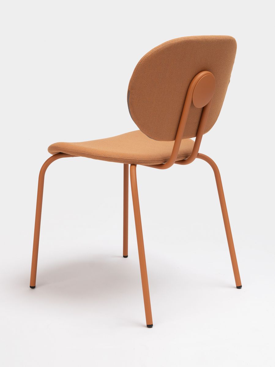 Metal legs in all Epoxy lacquers, please specify. Stained beech backrest without upholstery available upon request.