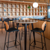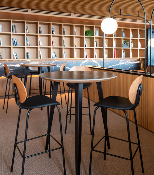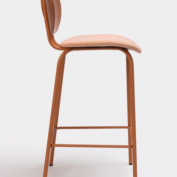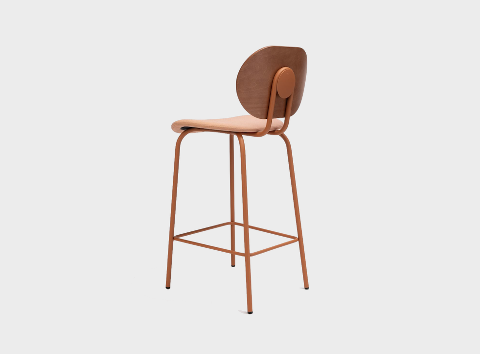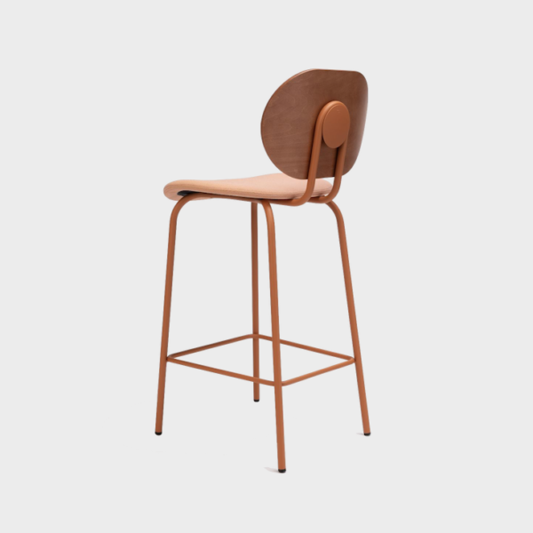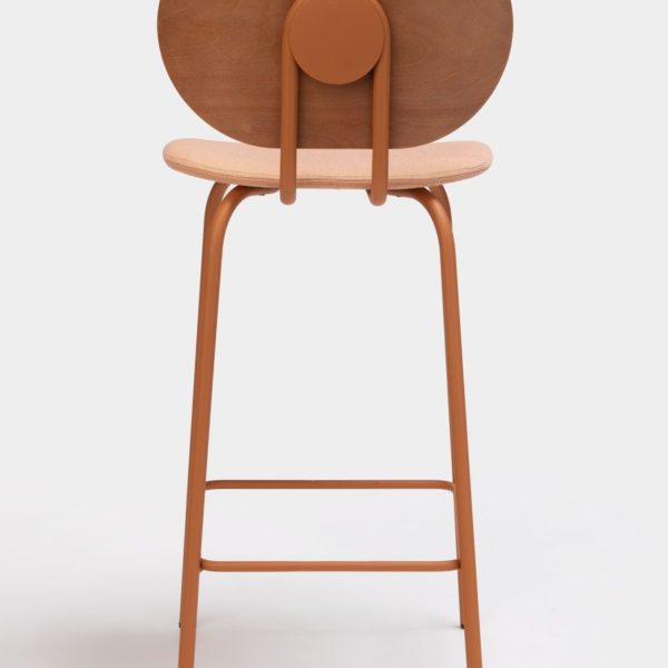 The Hari stool, available in two different heights, inspired by the world of textile looms, with a very industrial aesthetic combined with the delicacy of the threads to create a subtle and elegant chair.