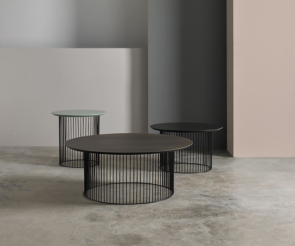 A collection of coffee tables, comprising a lacquered MDF top or wood veneered, compact and microtextured thermo-lacquered metal. Please specify your required finish from the spec sheet.