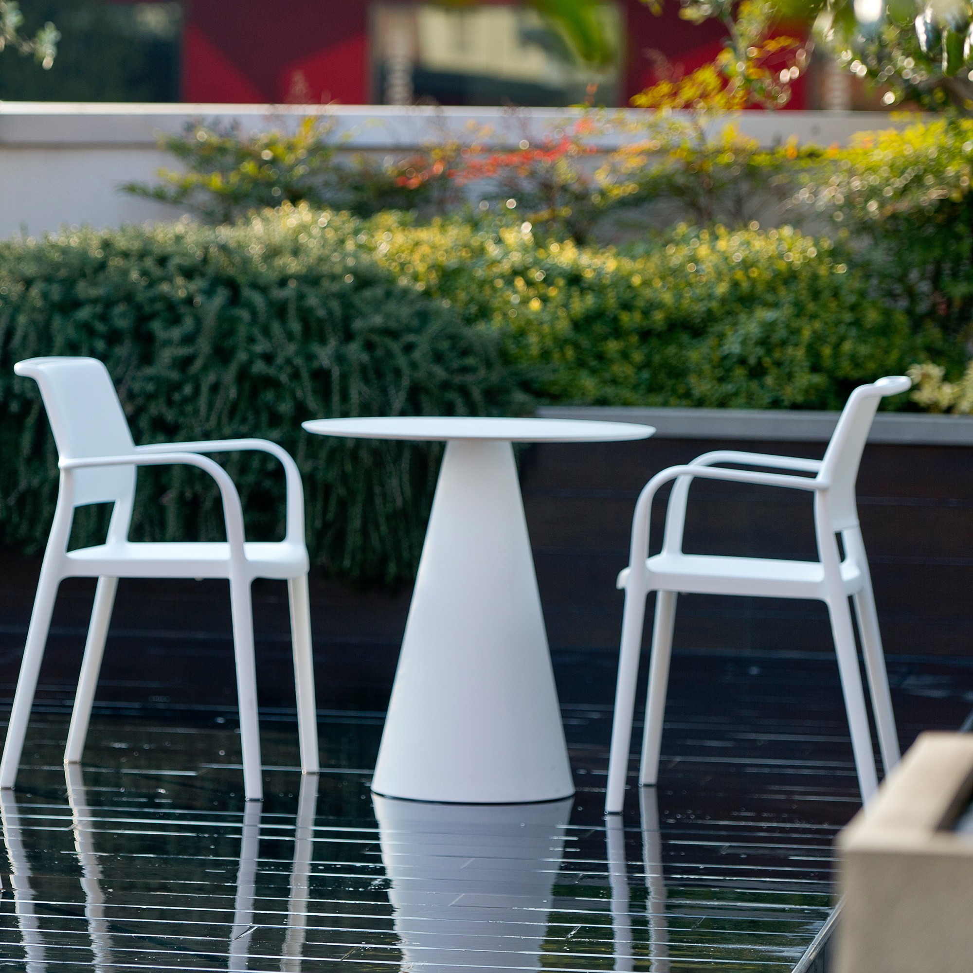 With its timeless and clean shape, Ikon talks about the architecture language. Dining table suitable for indoor and outdoor use. Injected polypropylene table base which can be combined with solid laminate or powder-coated steel tops.