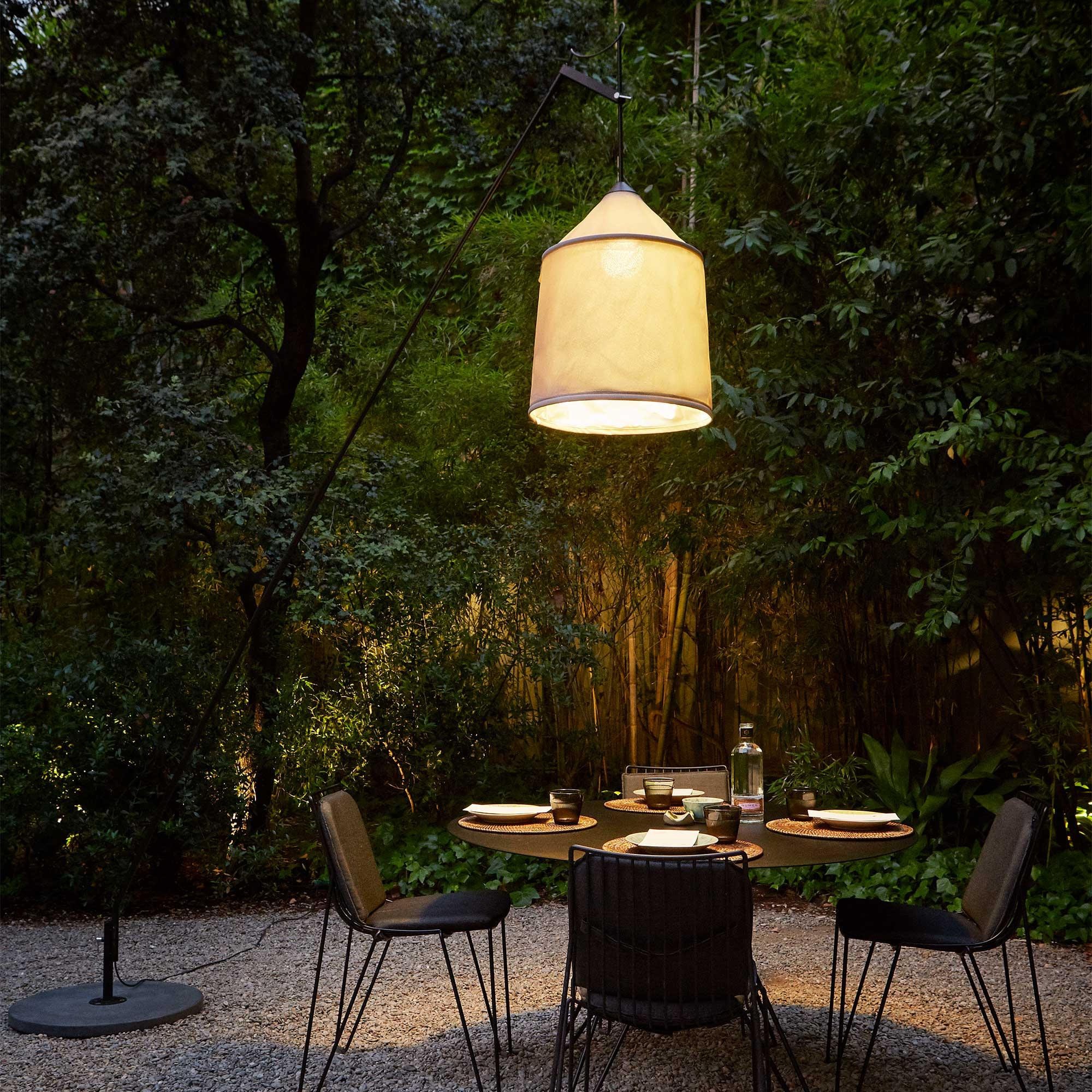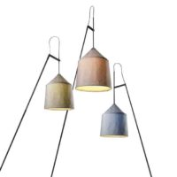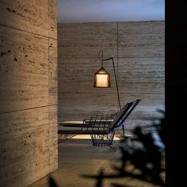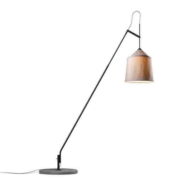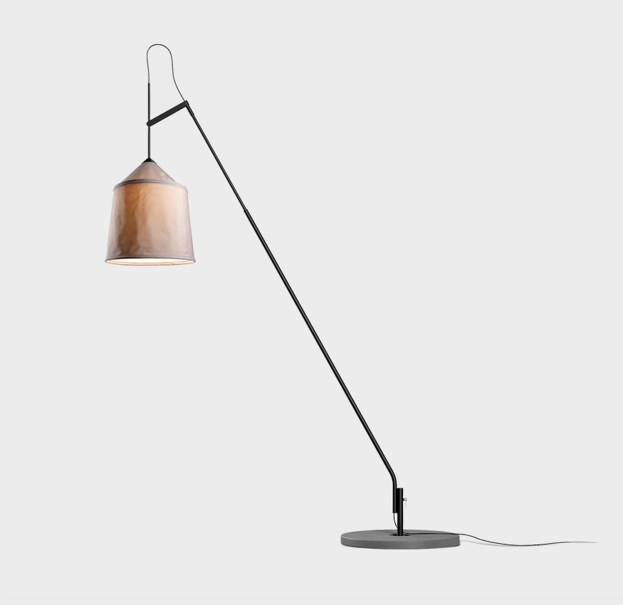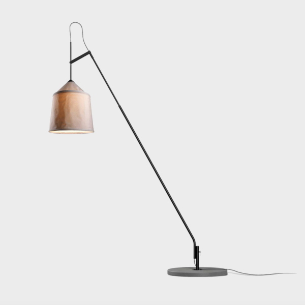 This new collection takes its name from the Bedouin tents of North Africa, and is inspired by their varied fabrics and forms. The textile shade is available in three sizes and four different colours, with a blank interior to optimise the quality of the downward light. The shades can be combined with two versatile stands to make various sizes of adjustable, rotating floor lamps; the fixture can also be affixed directly to the floor or wall, and the shades can be hung independently as pendants. Including shade, structure, concrete base and floor stem.