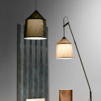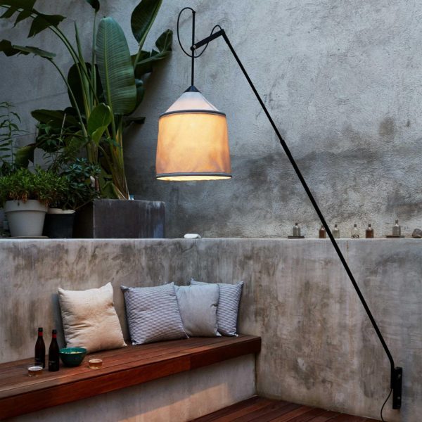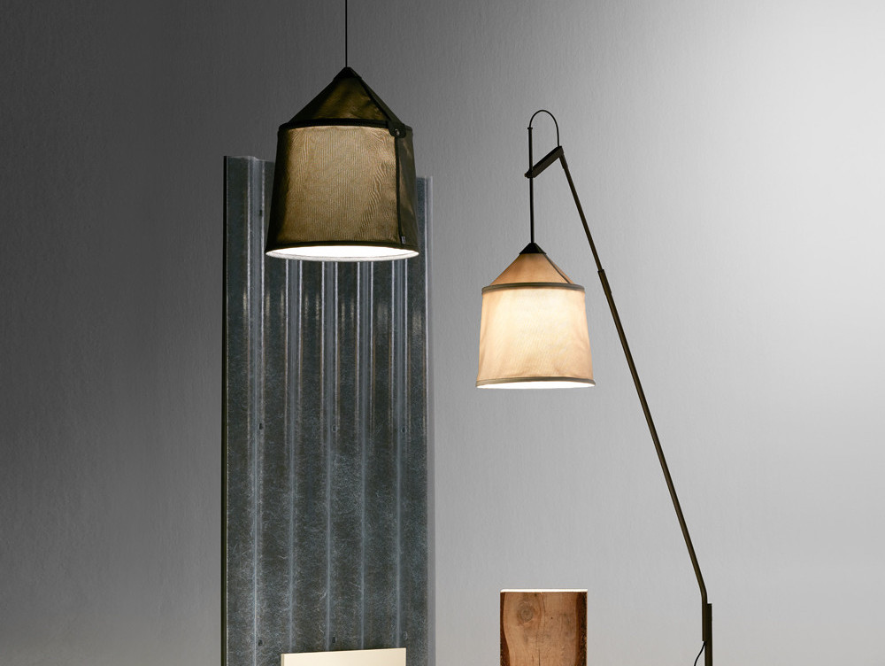 This new collection takes its name from the Bedouin tents of North Africa, and is inspired by their varied fabrics and forms. The textile shade is available in three sizes and four different colours, with a blank interior to optimise the quality of the downward light. The shades can be combined with two versatile stands to make various sizes of adjustable, rotating floor lamps; the fixture can also be affixed directly to the floor or wall, and the shades can be hung independently as pendants. Including shade, structure and wall bracket.