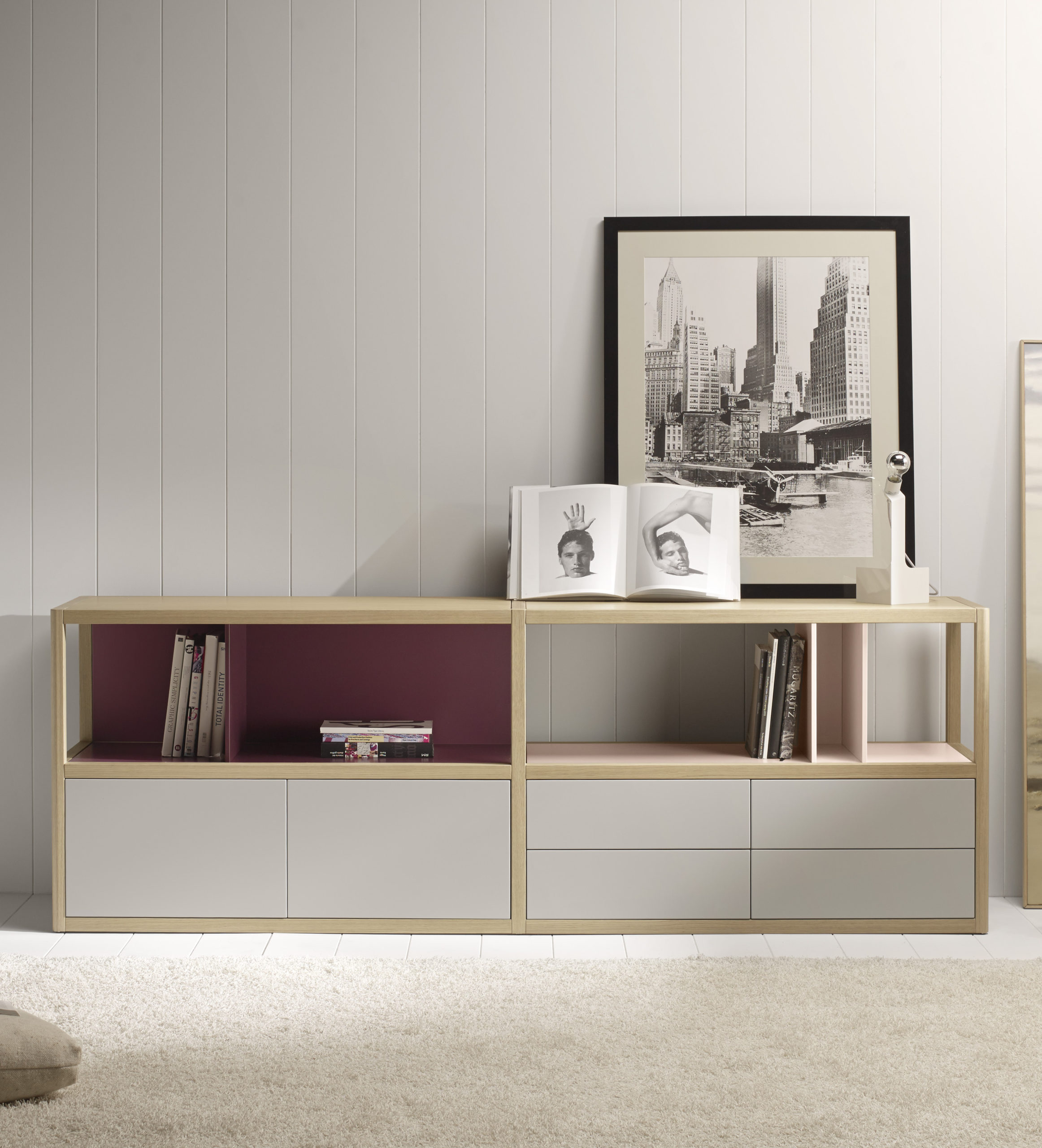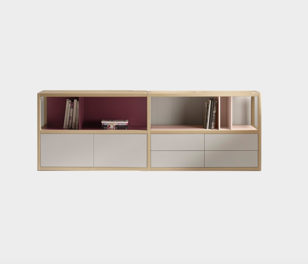Treku together with the designer have created a system that is characterised by a harmonious blend of solid wood and different materials such as coloured lacquer, felt and even marble. In other words, we combine fine, high-quality materials with a range of fresher, more modern elements. The personality of each individual piece will depend on the elements used to create it, with a wide range of styles available, from the more open to the more functional, and from the more colourful to the more sober and restrained.
