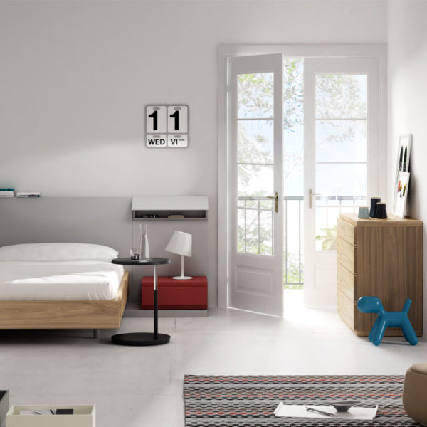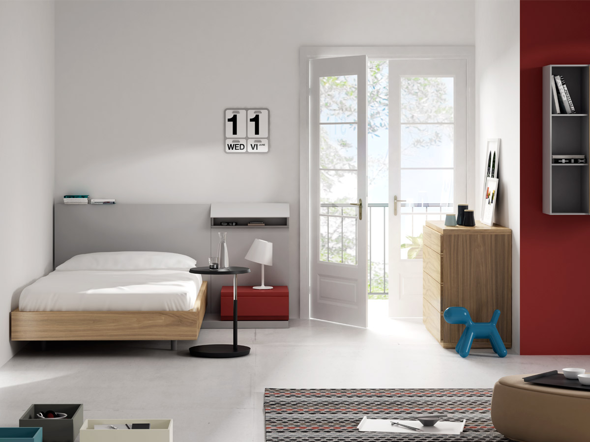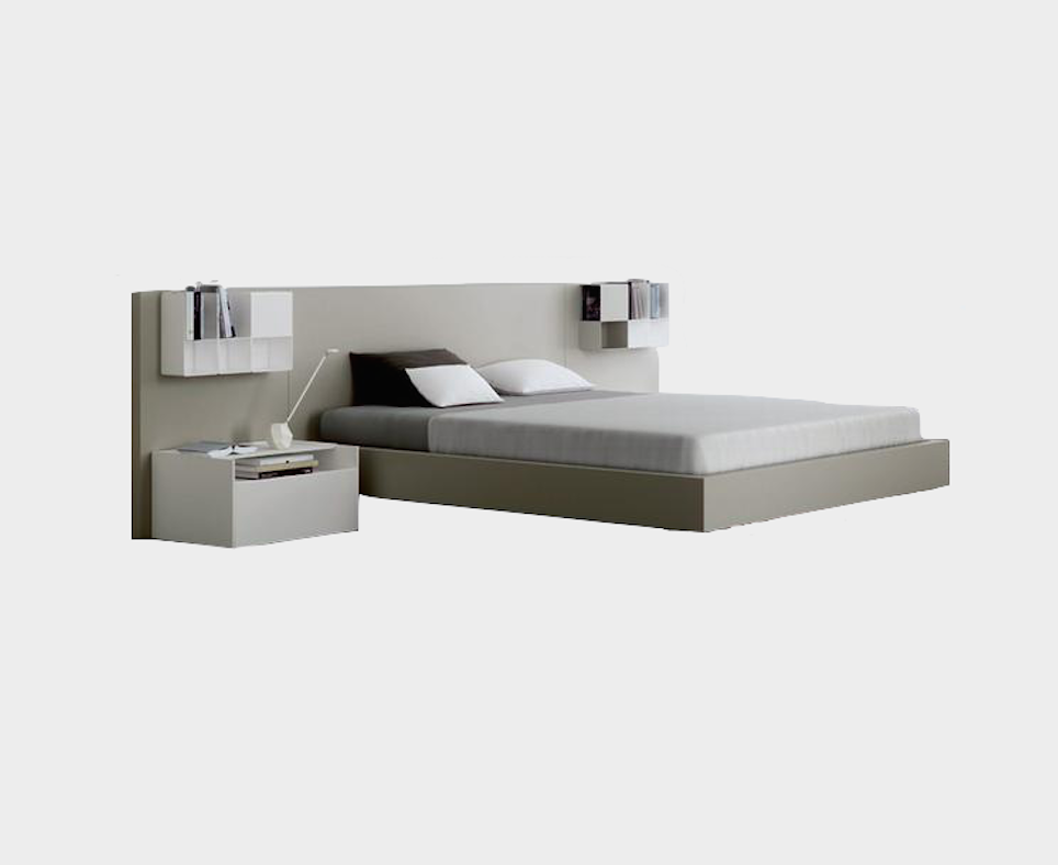 The working day is over and it’s time to relax and recover your strength. You’re at home and you want to have everything tidy and accessible. Kairos is a system of headboards for beds with containers in which to keep books, medicines, jewellery, glasses, etc. The addition and combination of small optional elements, in wood and metal sheet, meets specific needs and allows a wide range of compositions. The various dimensions and finishes (lacquered, upholstered or veneer) facilitate compositional options king, queen and single beds.