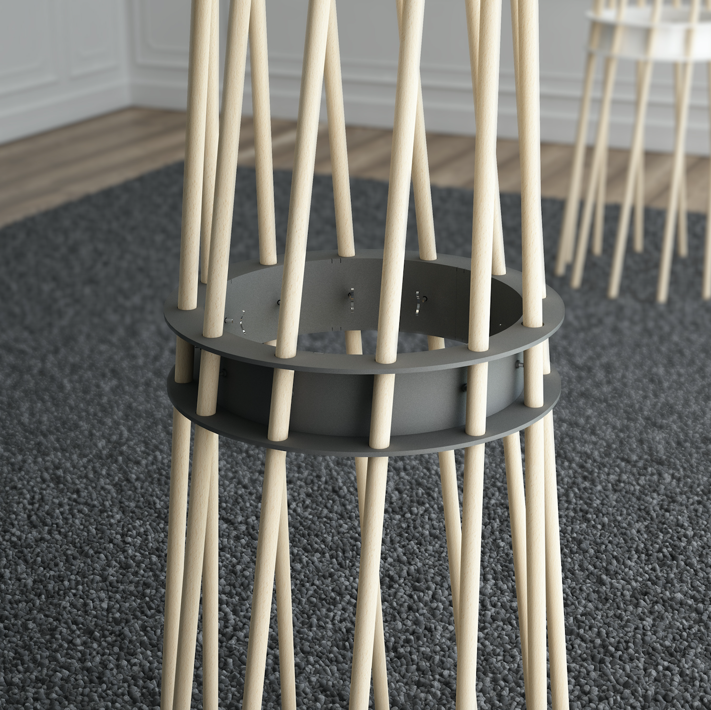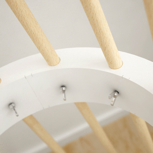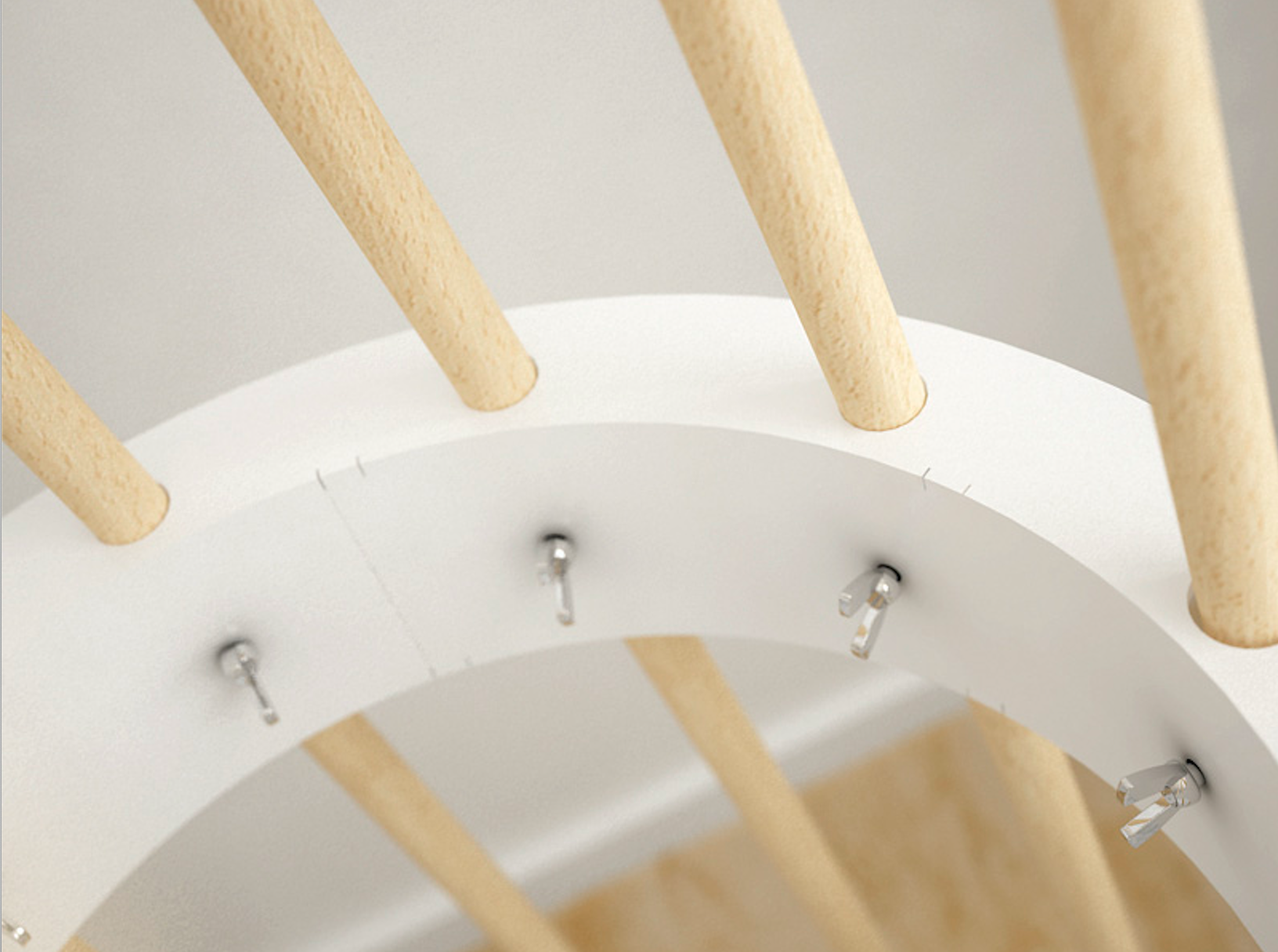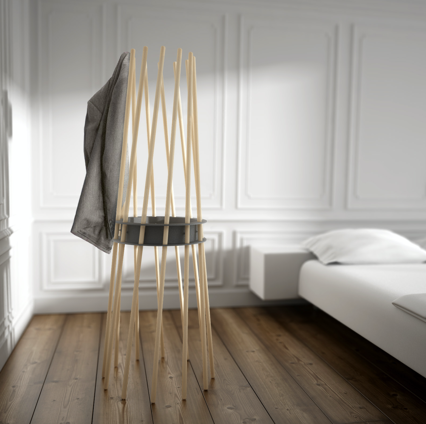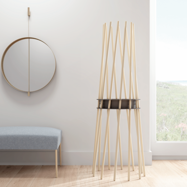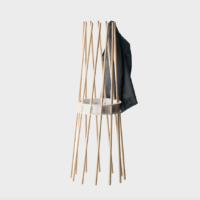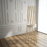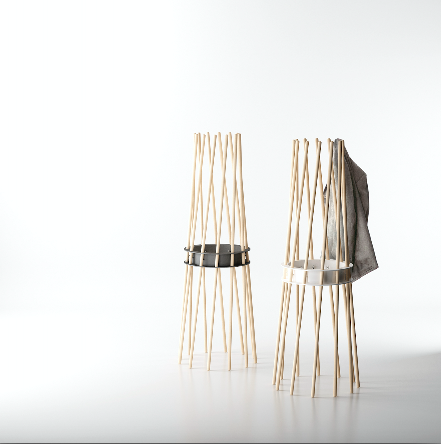 Exclusive coat stand formed by beech wood bars and a steel ring, painted in several colours.