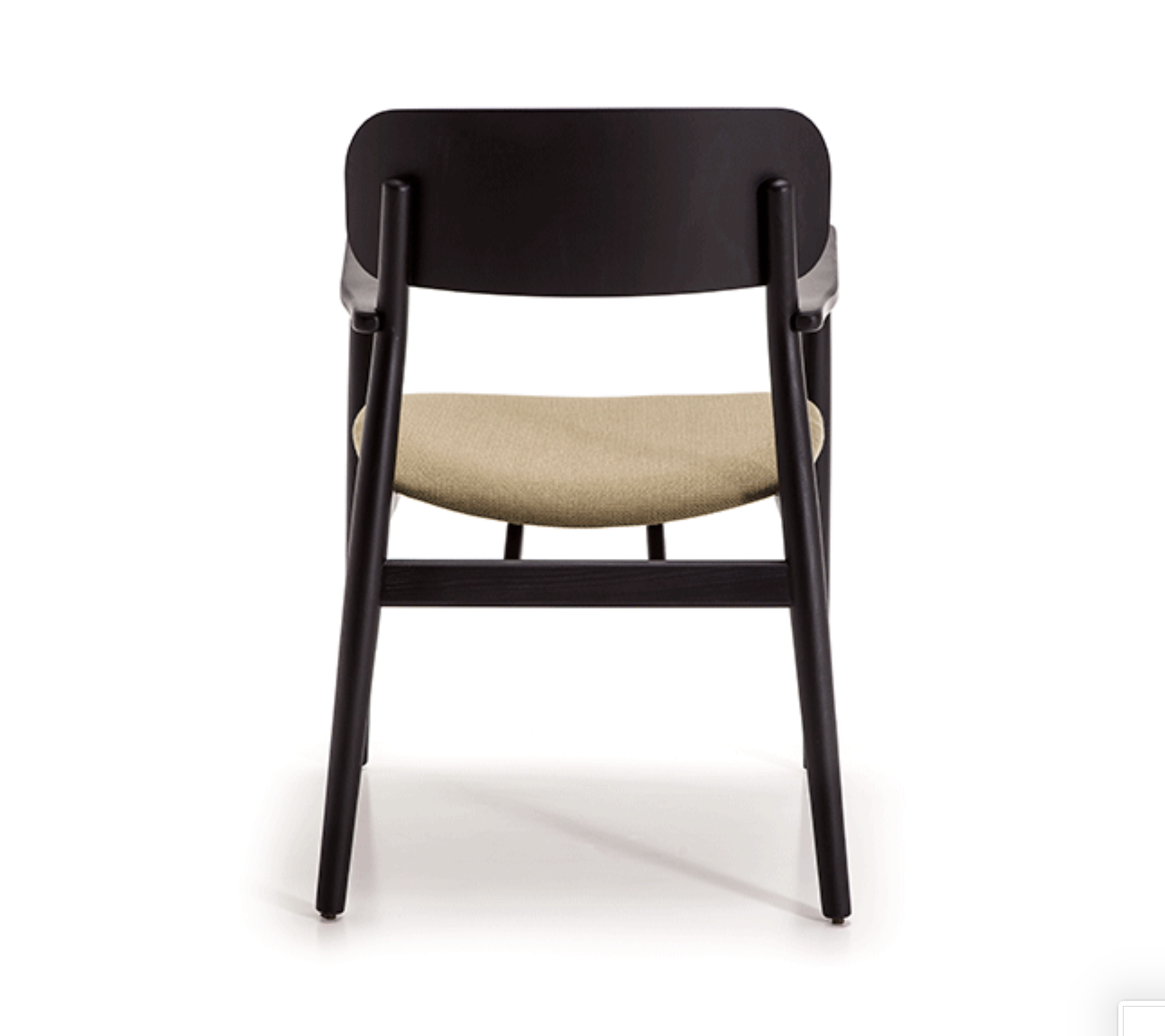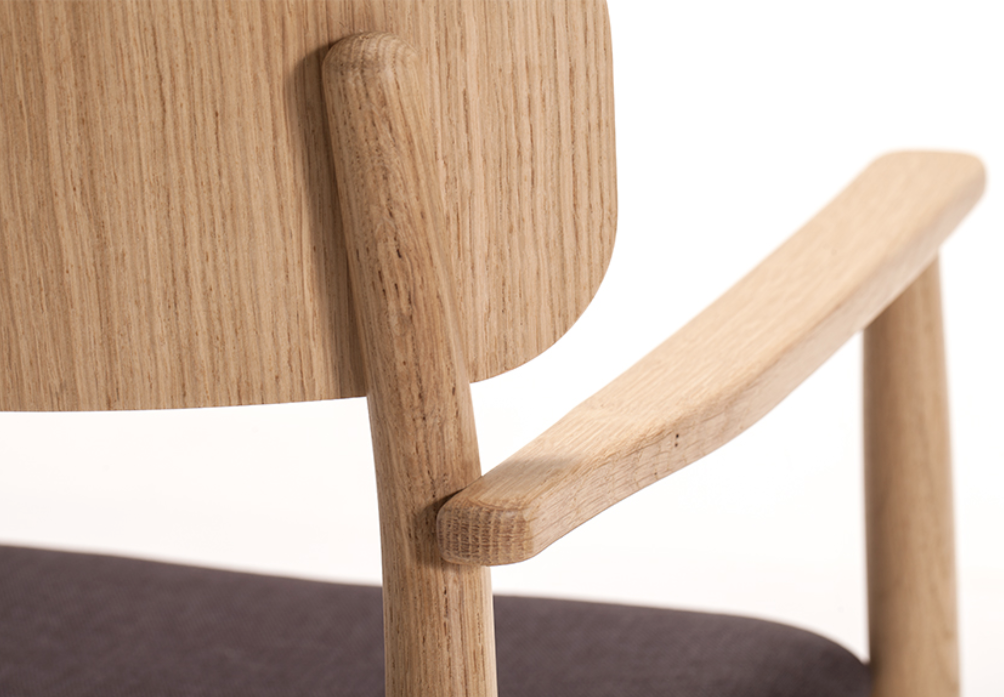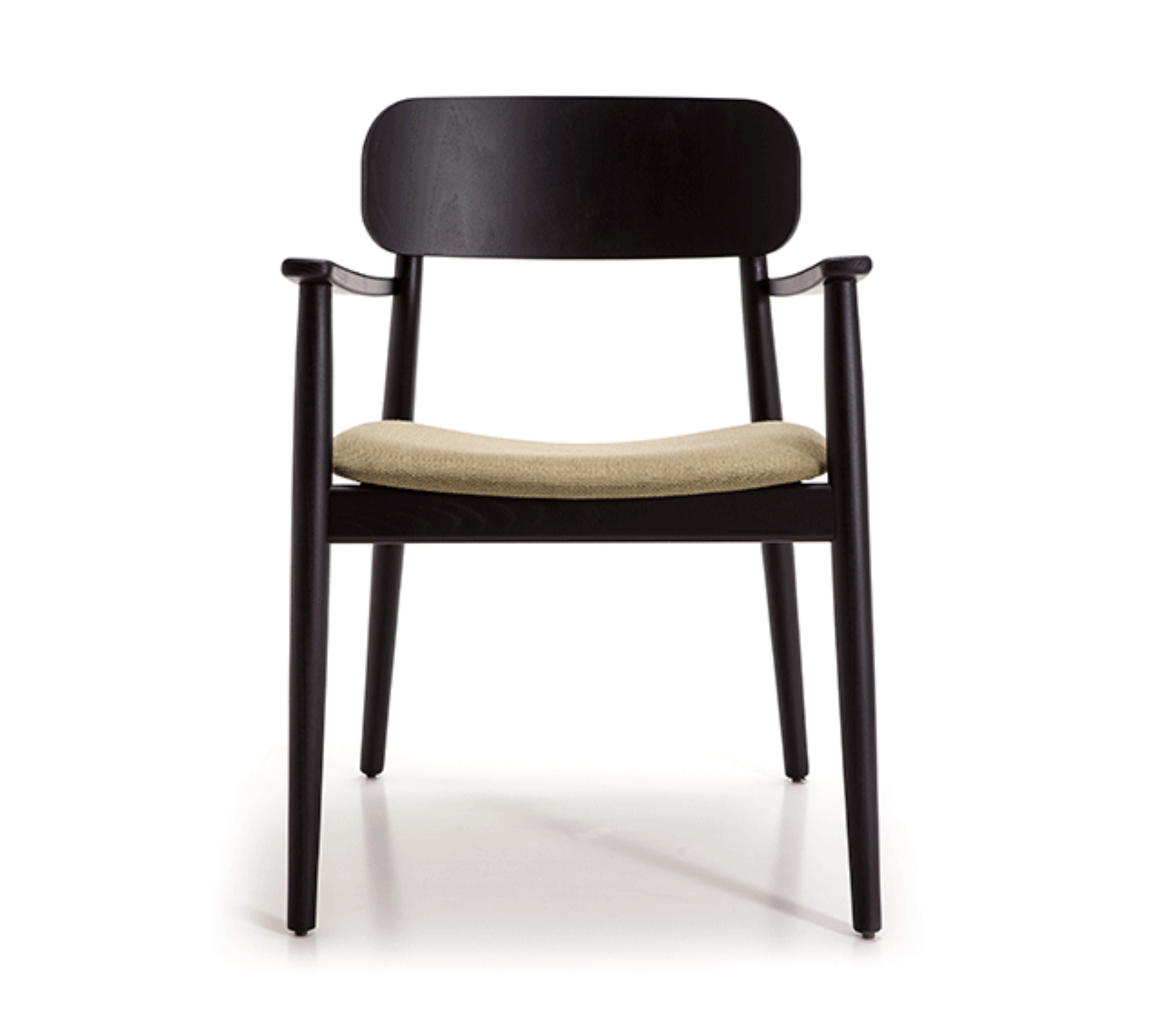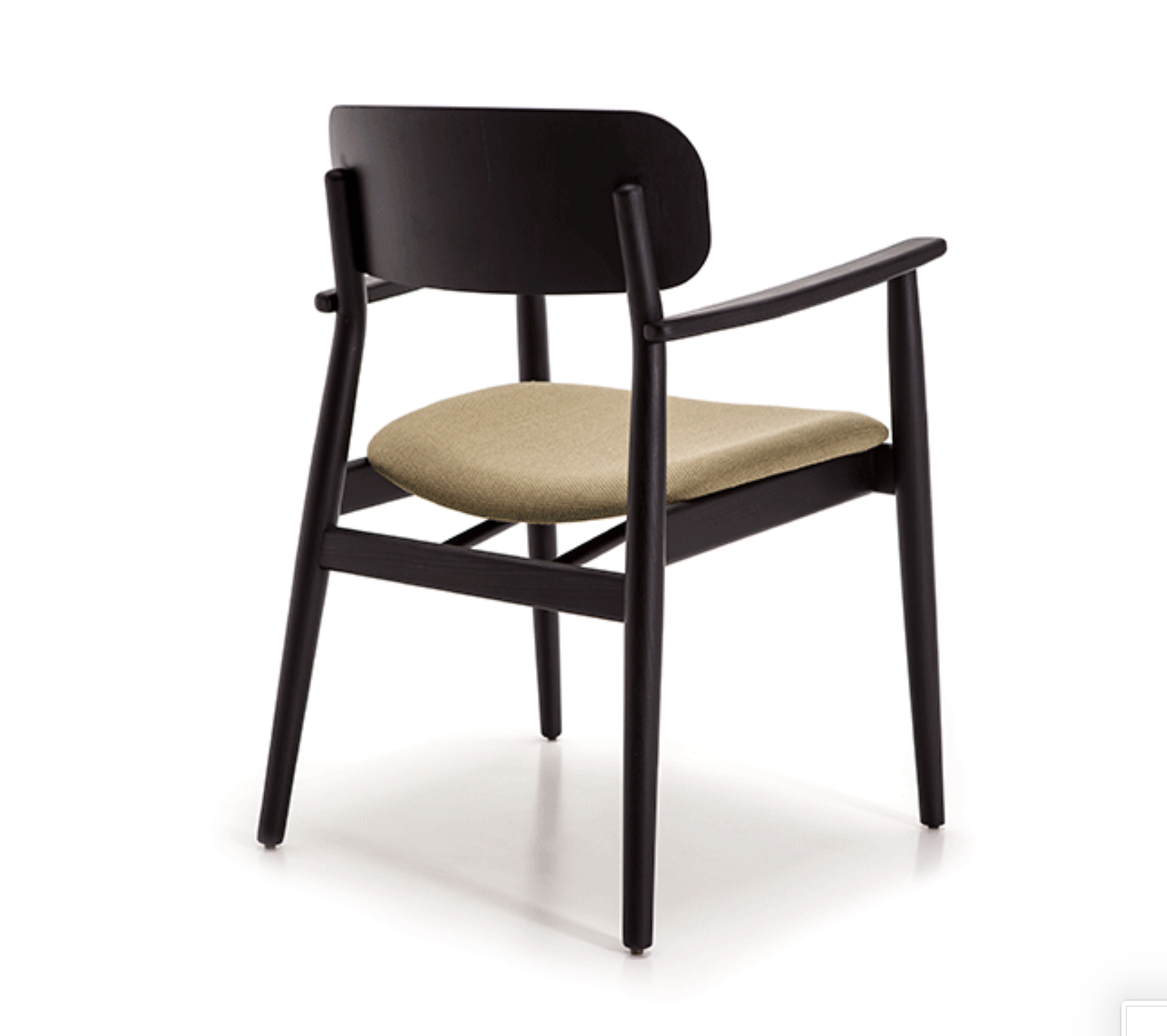 Armrest chair with solid wood frame, wooden board backrest and wooden board or upholstered seat.