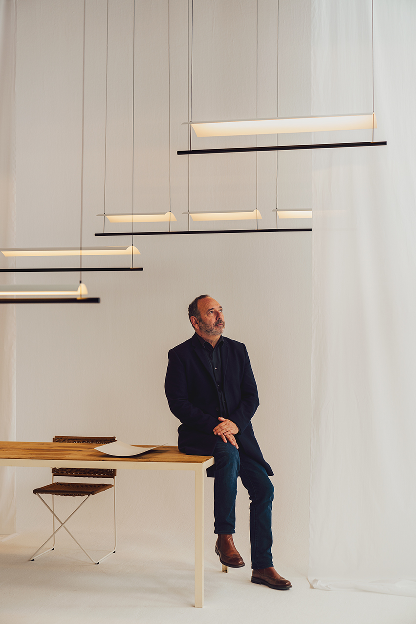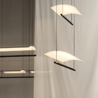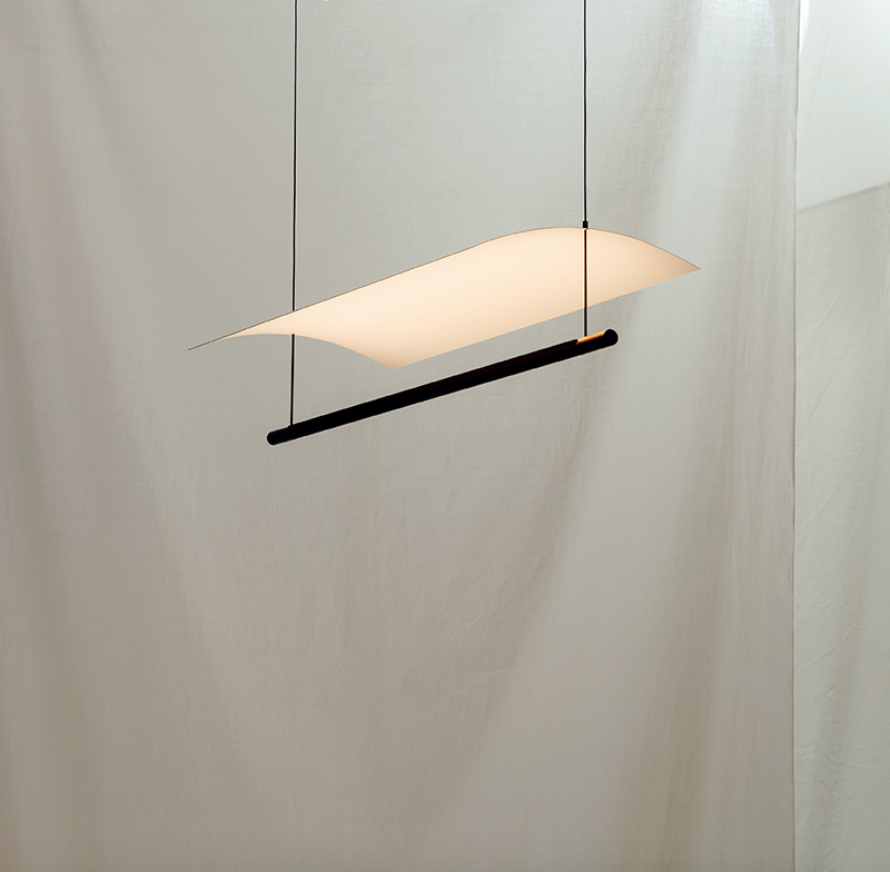 A line of light and a thin metal sheet create a soft and effective diffusion. Lámina exploits the virtues of reflected light with simple, clean lines in varying shades and sizes, laid bare and fully exposed. This pendant lamp fascinates the eye with the elegance of its curve and soothing light. Whether as a single unit or several in sequence, in small or large sizes, Antoni Arola’s combination of formal purity and functional virtue elicits emotion.