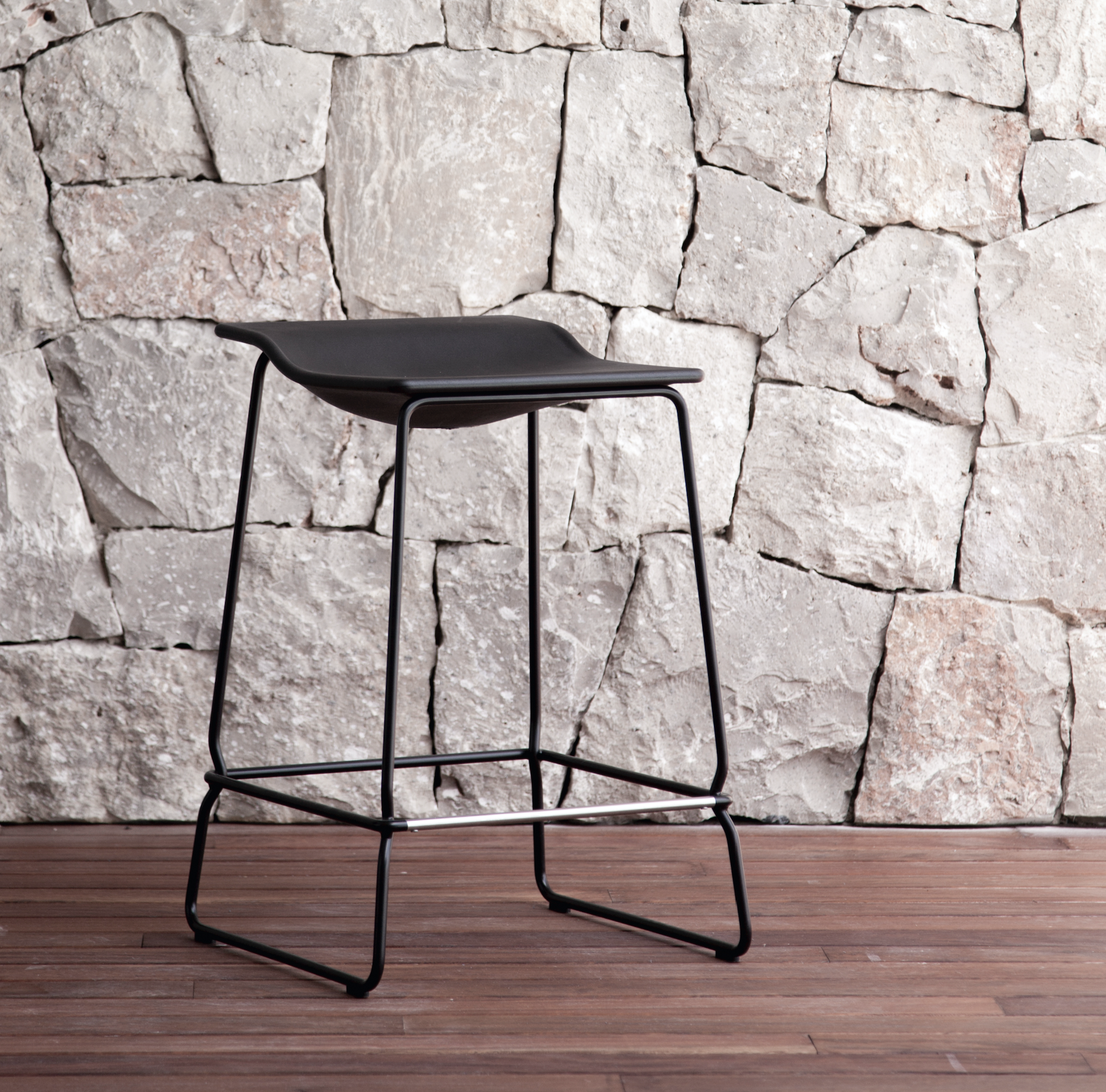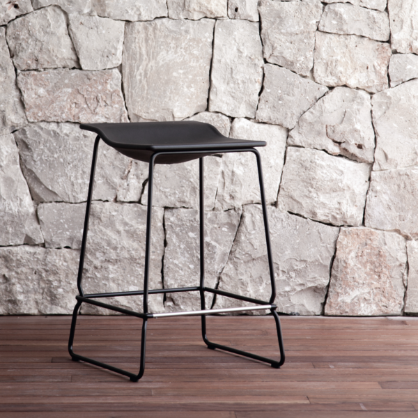However, although the Last Minute bar stool is perfect for lively settings such as those mentioned above, the fully ergonomic seat design will also welcome you to stay on it for longer periods of time. The seat itself is made from polyethylene, which is a lightweight and durable thermoplastic. It is shaped through rotomoulding (also called rotational moulding), which is a casting technique for plastic which allows you to create solid single piece elements. You can be sure that the seat won’t rip, break or tear.