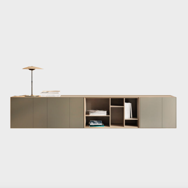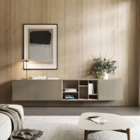 A thin half-centimeter frame envelopes the entire piece, outlining the push-to-open drawers. The Lauki collection is made up of multiple boxes that can be arranged on the floor, piled on top of one another or hung from the wall. Moreover, these boxes are available in a wide range of different measurements, finishes and functions (drawers, doors, open modules, etc.), thus enabling you to create an endless variety of configurations to suit any room.