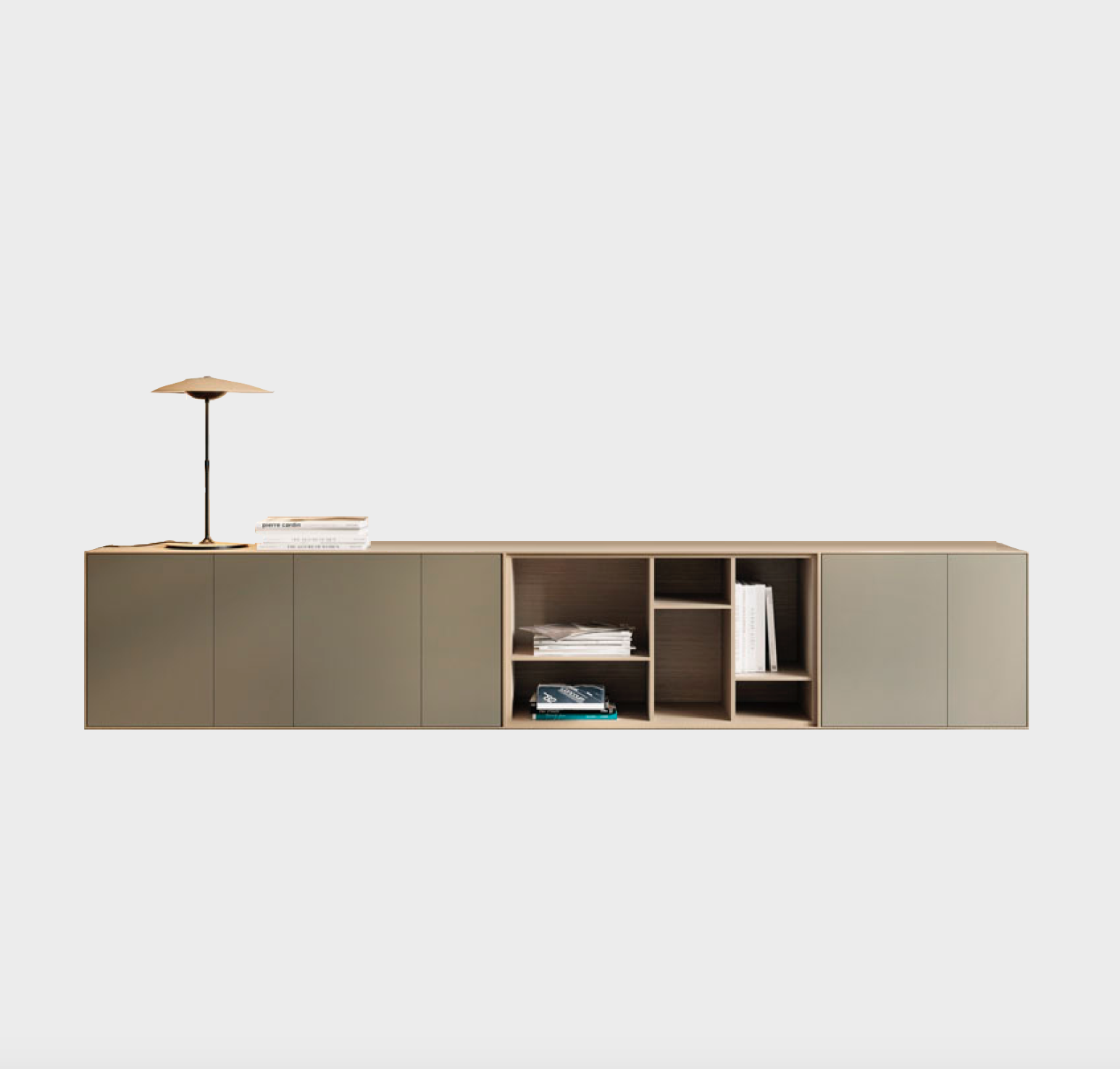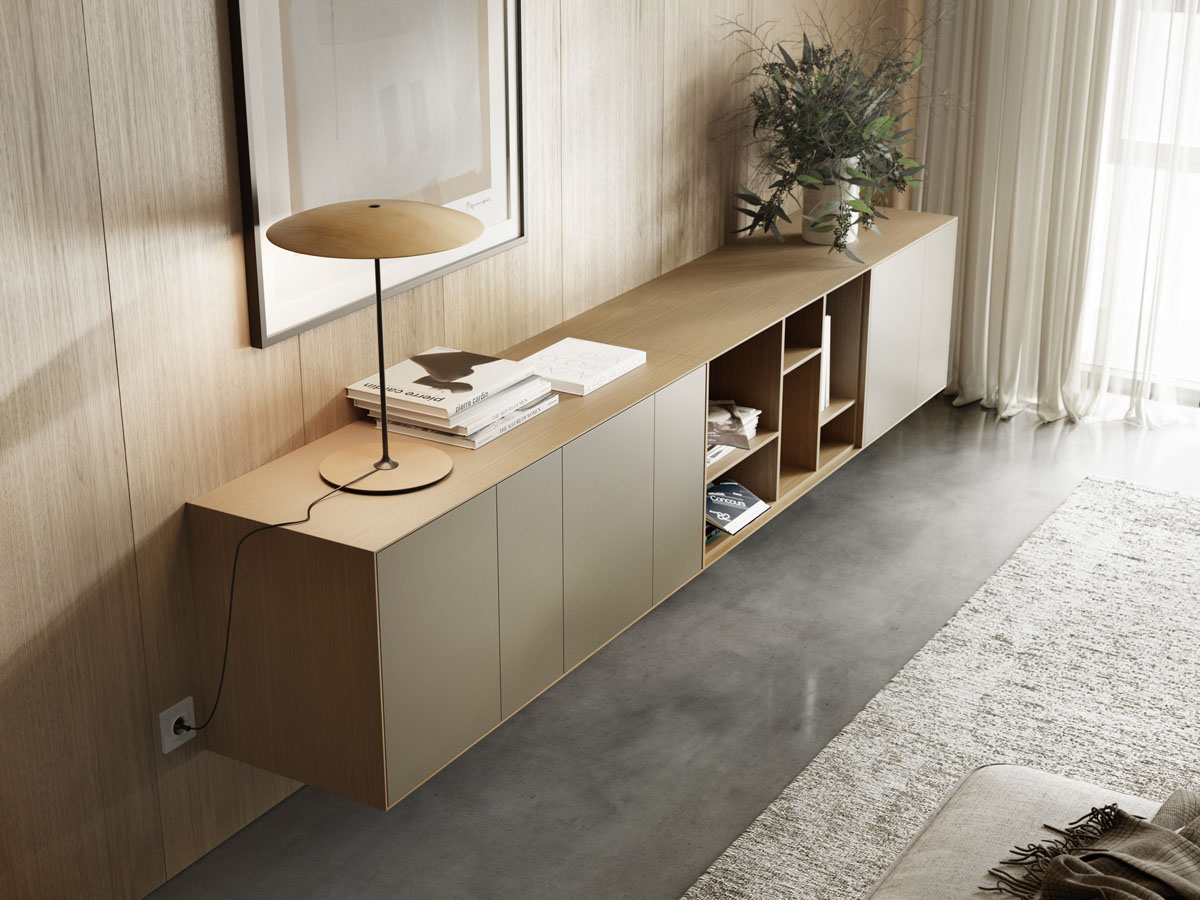 A thin half-centimeter frame envelopes the entire piece, outlining the push-to-open drawers. The Lauki collection is made up of multiple boxes that can be arranged on the floor, piled on top of one another or hung from the wall. Moreover, these boxes are available in a wide range of different measurements, finishes and functions (drawers, doors, open modules, etc.), thus enabling you to create an endless variety of configurations to suit any room.