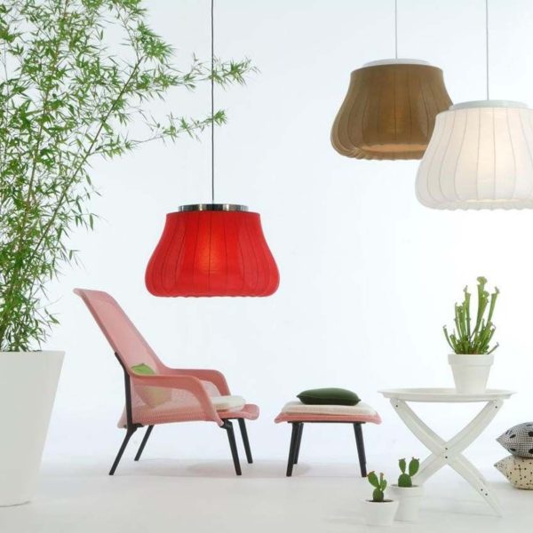 Composed by a delicate metallic structure and dressed in elastic fabric made in three different colours: white, red and brown.