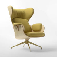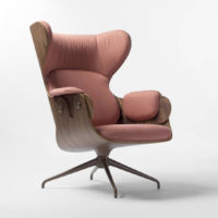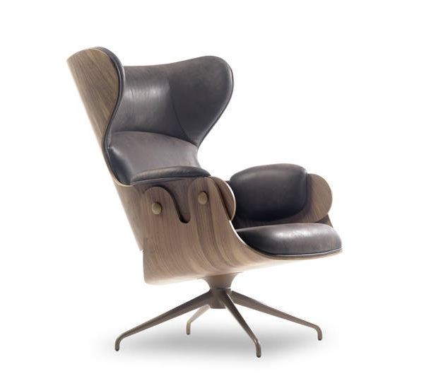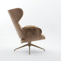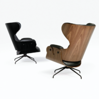 The Lounger has an elegance carried throughout the Showtime series, the comfort that this typology requires in an armchair and the unmistakable hallmark in Hayon’s designs – contrasts between classicism and modernity, monochrome finishes and quality manufacturing with material or leather upholstery. Tubular legs in painted steel in a satin finish. Seat, backrest and footstool in plywood with surfaces in lacquered MDF, walnut nature effect, natural ash, ash stained oak or stained black. Metal upholstery buttons in the same finish as the structure. Armrests, seat back and footstool upholstered in BD fabrics and leathers.