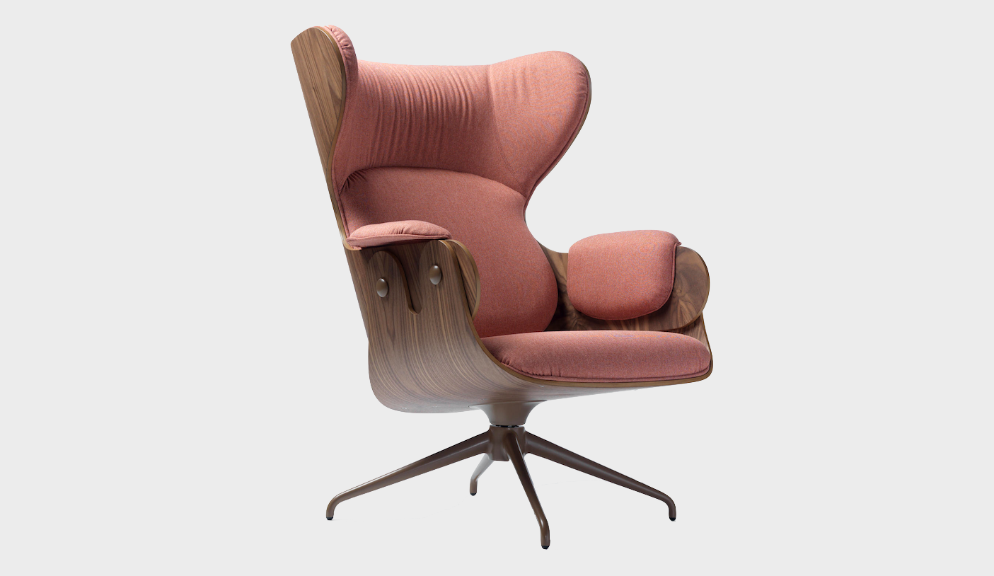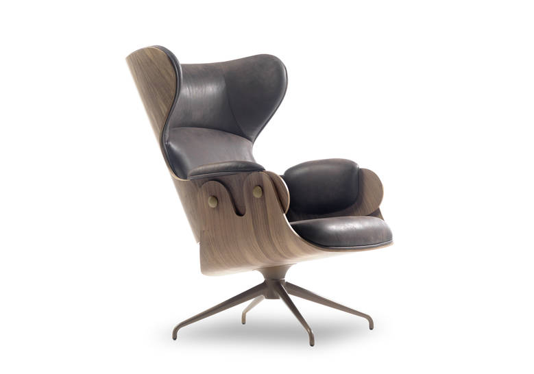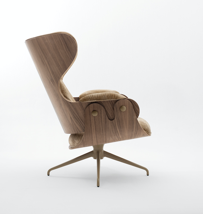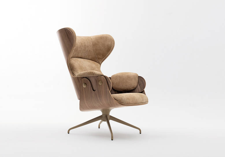 The Lounger has an elegance carried throughout the Showtime series, the comfort that this typology requires in an armchair and the unmistakable hallmark in Hayon’s designs – contrasts between classicism and modernity, monochrome finishes and quality manufacturing with material or leather upholstery. Tubular legs in painted steel in a satin finish. Seat, backrest and footstool in plywood with surfaces in lacquered MDF, walnut nature effect, natural ash, ash stained oak or stained black. Metal upholstery buttons in the same finish as the structure. Armrests, seat back and footstool upholstered in BD fabrics and leathers.