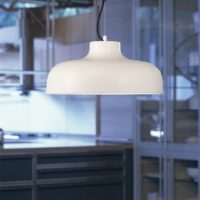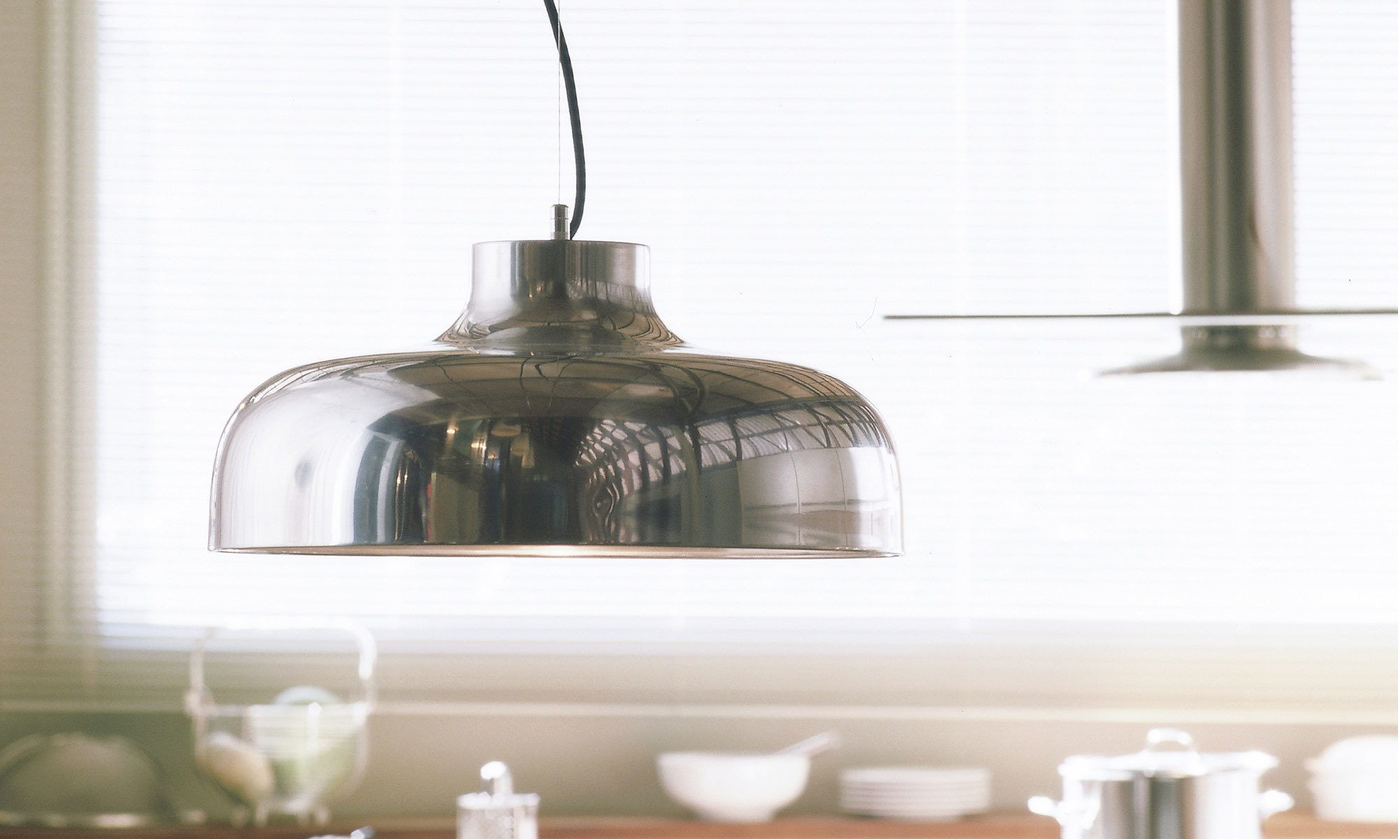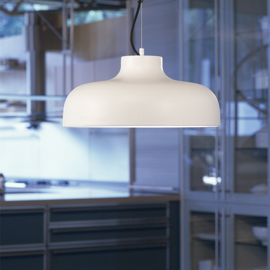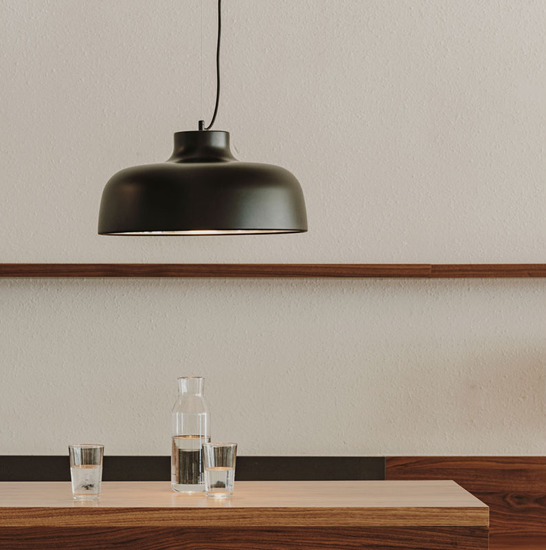 Since the shade is opaque, its bell-shape cross section gives it a large inside surface to diffuse the light. In short, M68 is the friendliest way of lighting a large table.