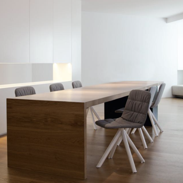 Recyclable polypropylene chair with a versatile design that is suitable for collaborative spaces, hospitality projects as well as for residential properties. The sturdy seat is smooth to the touch, and the structure is lightweight yet very resistant. A comfortable and affordable non-upholstered chair.