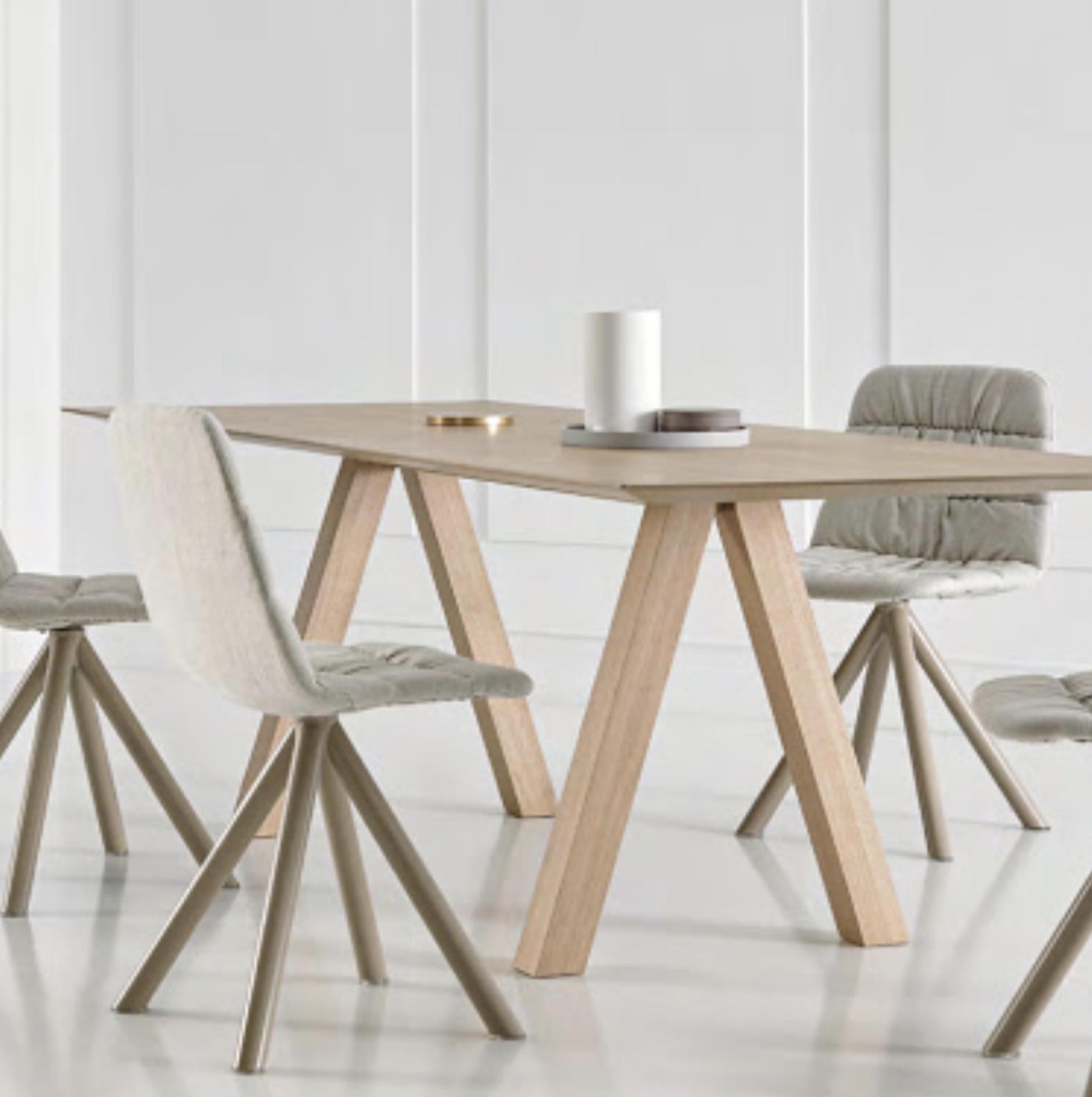 Recyclable polypropylene chair with a versatile design that is suitable for collaborative spaces, hospitality projects as well as for residential properties. The sturdy seat is smooth to the touch, and the structure is lightweight yet very resistant. A comfortable and affordable non-upholstered chair.