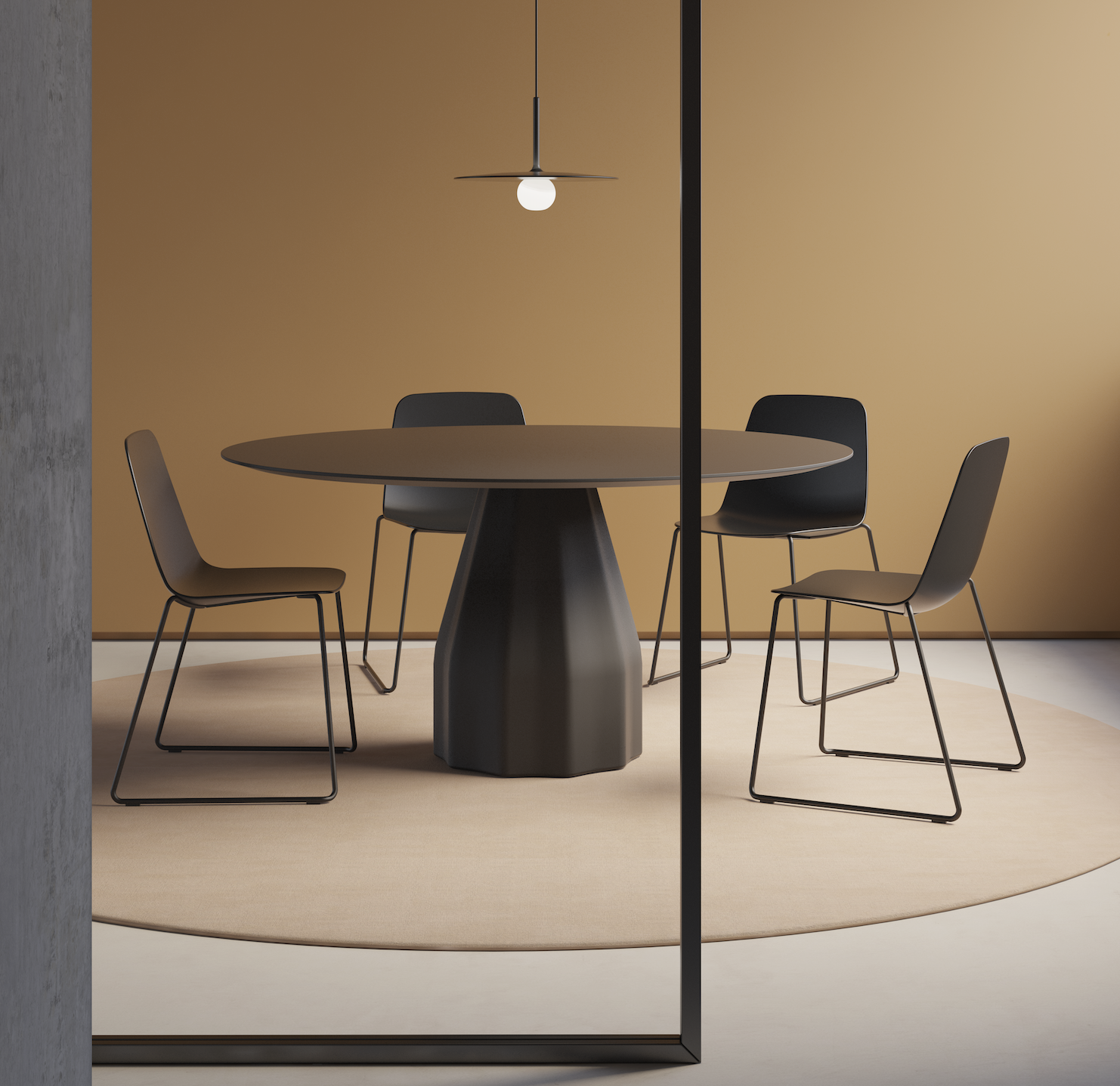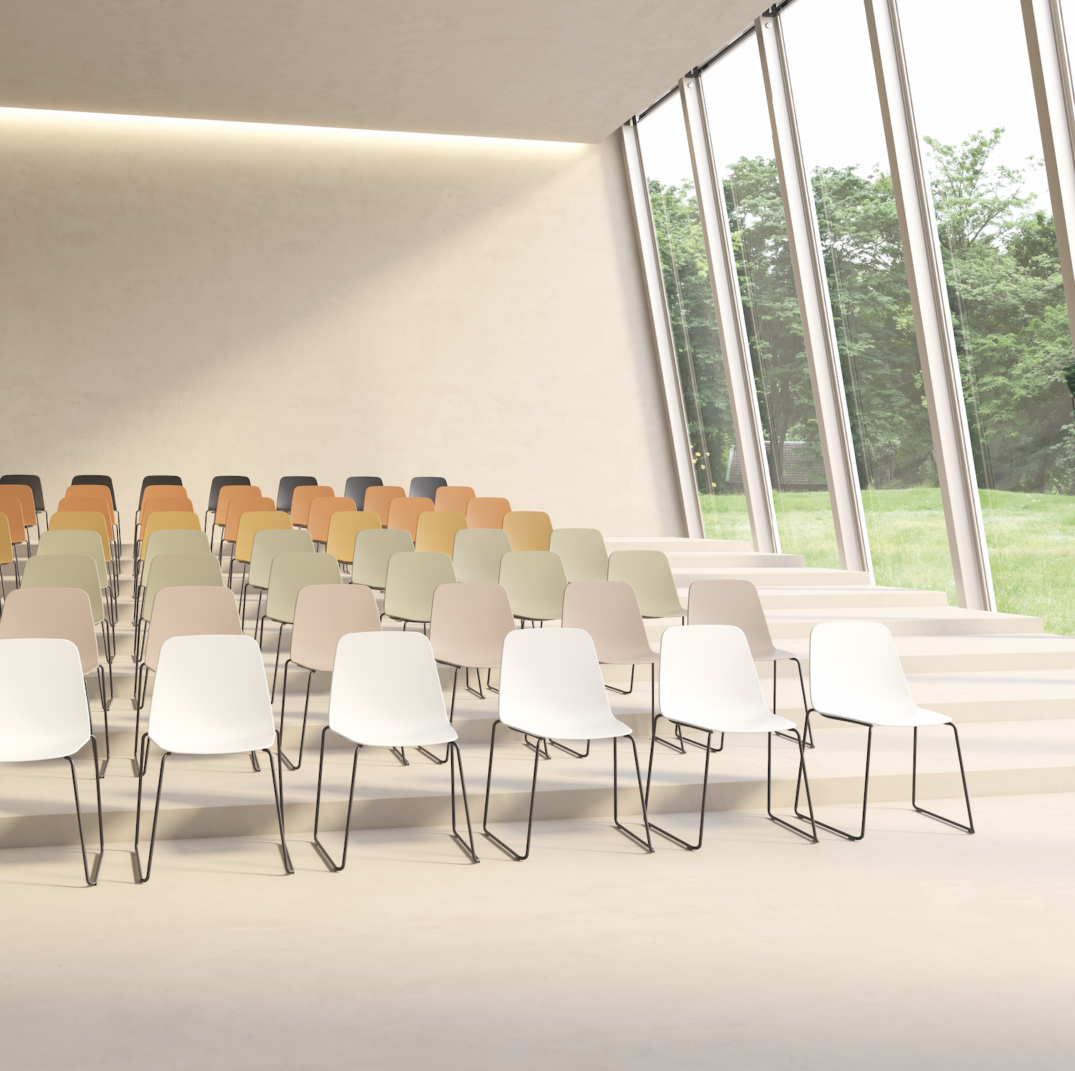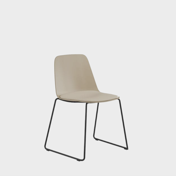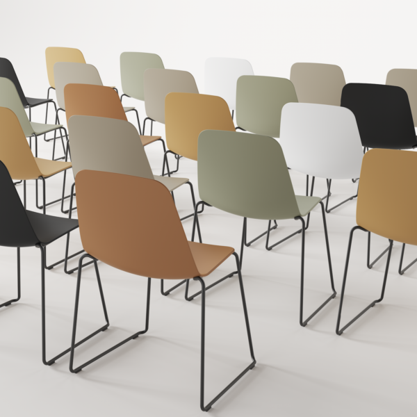 Recyclable polypropylene chair with a versatile design that is suitable for collaborative spaces, hospitality projects as well as for residential properties. The sturdy seat is smooth to the touch, and the structure is lightweight yet very resistant. A comfortable and affordable non-upholstered chair