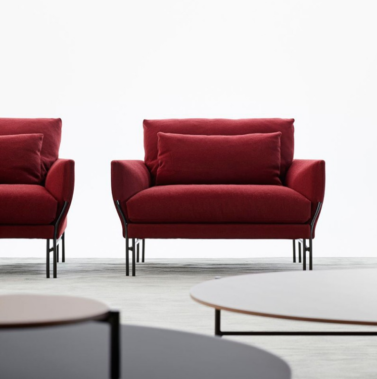 Majestic unites comfort and lightness based on a padded body that balances straight and sinuous lines and invites you to enjoy a moment of intimacy, rest or a friendly conversation. This sofa combines elegant, clean and pure lines with the comfort provided by a thick and soft sitting area, qualities that the back of the sofa also conveys. Aesthetically, one of its most distinctive features is a visible base made up of a double leg system that reveals the lightness and the strength of the structure.