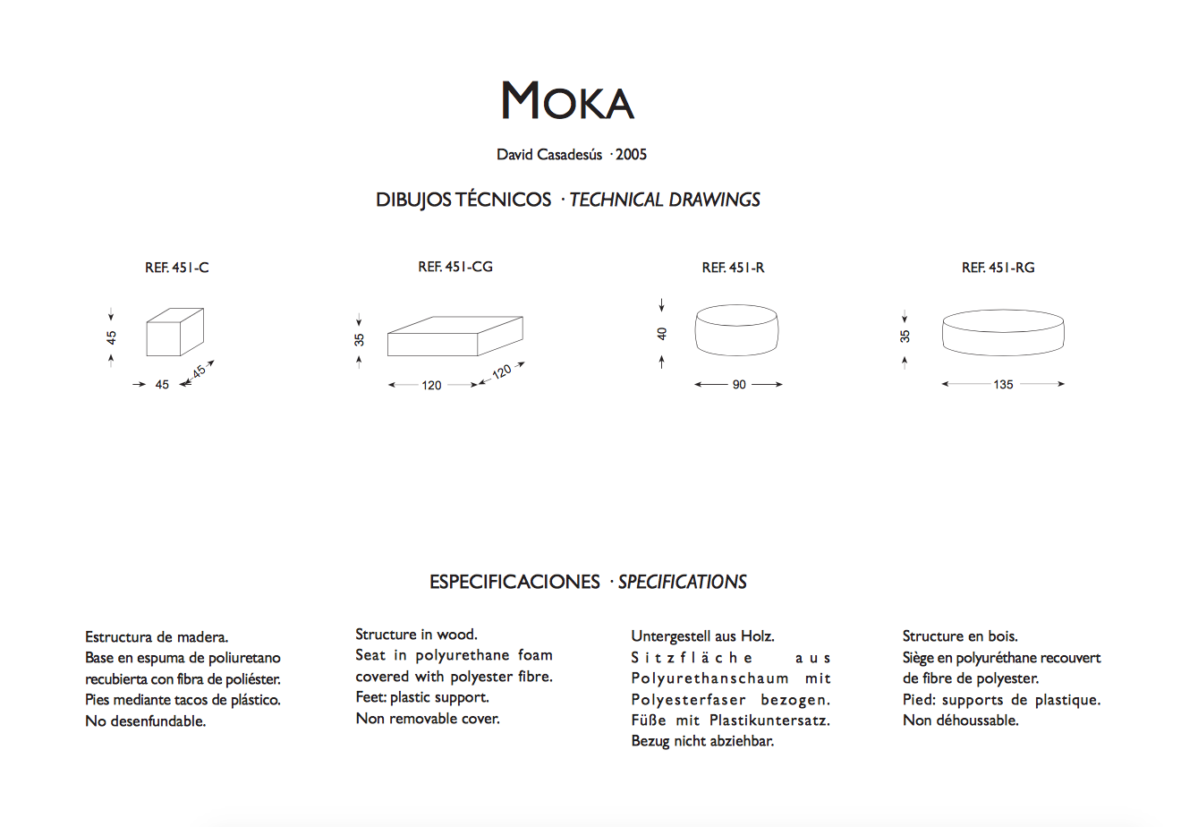 Moka ottoman collection fits in every space of the house. It comes in a variety of sizes and finishes.
