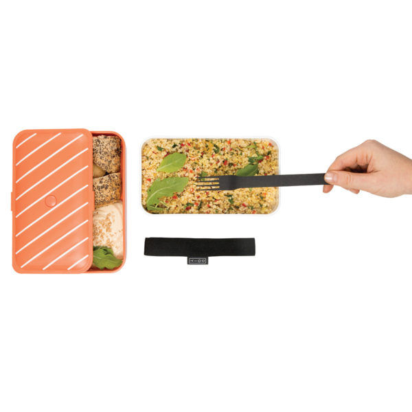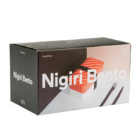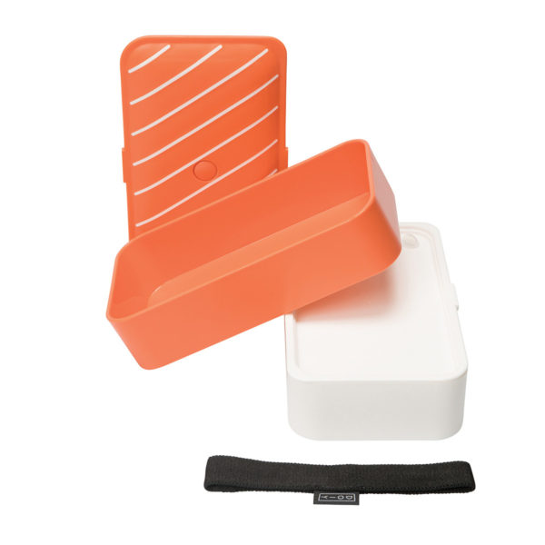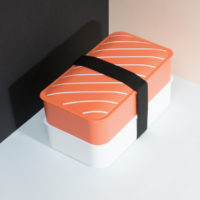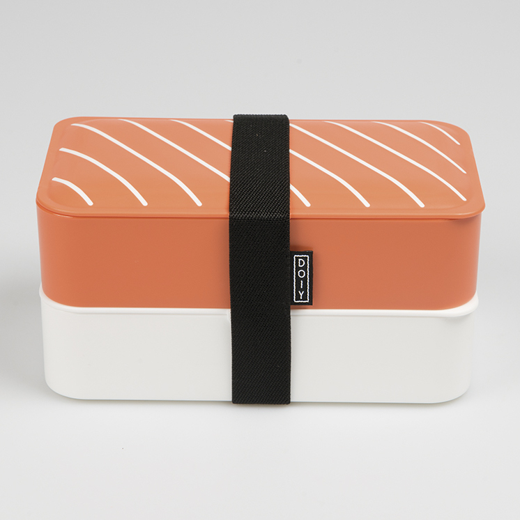 Cute bento style lunch box shaped as a Nigiri. With two compartments, this food container lets you take your lunch or snack with you on the go. Its hermetic seal means no food leaks and its minimalist design keeps it light weight. Dishwasher and microwave safe (remove elastic band).