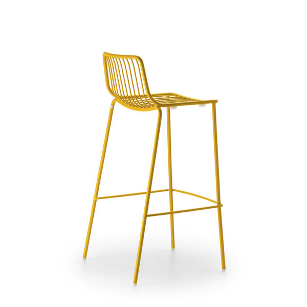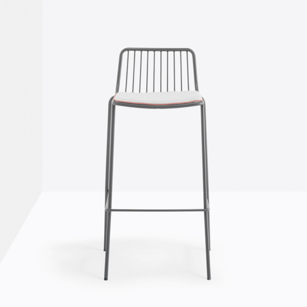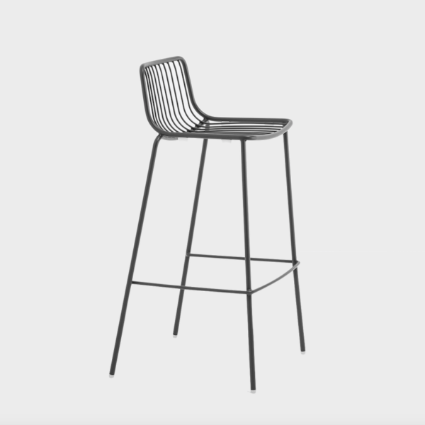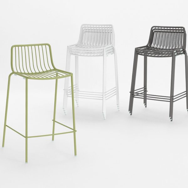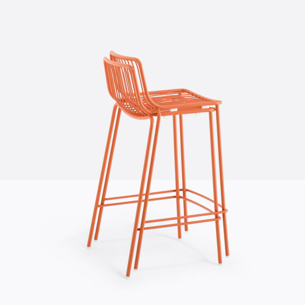 Nolita is a family of outdoor seatings that recalls the origins of a historic course started by Mario Pedrali in 1963 with his first metal garden chairs. Barstool with steel tube frame powder coated for outdoor use.