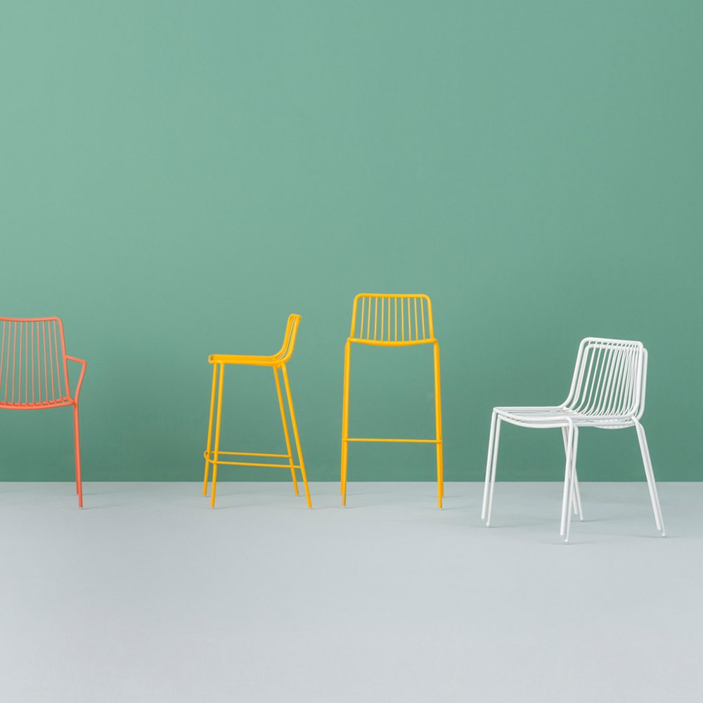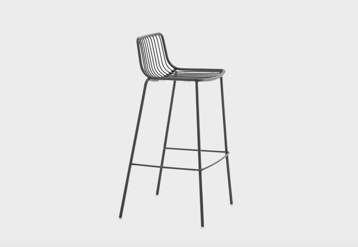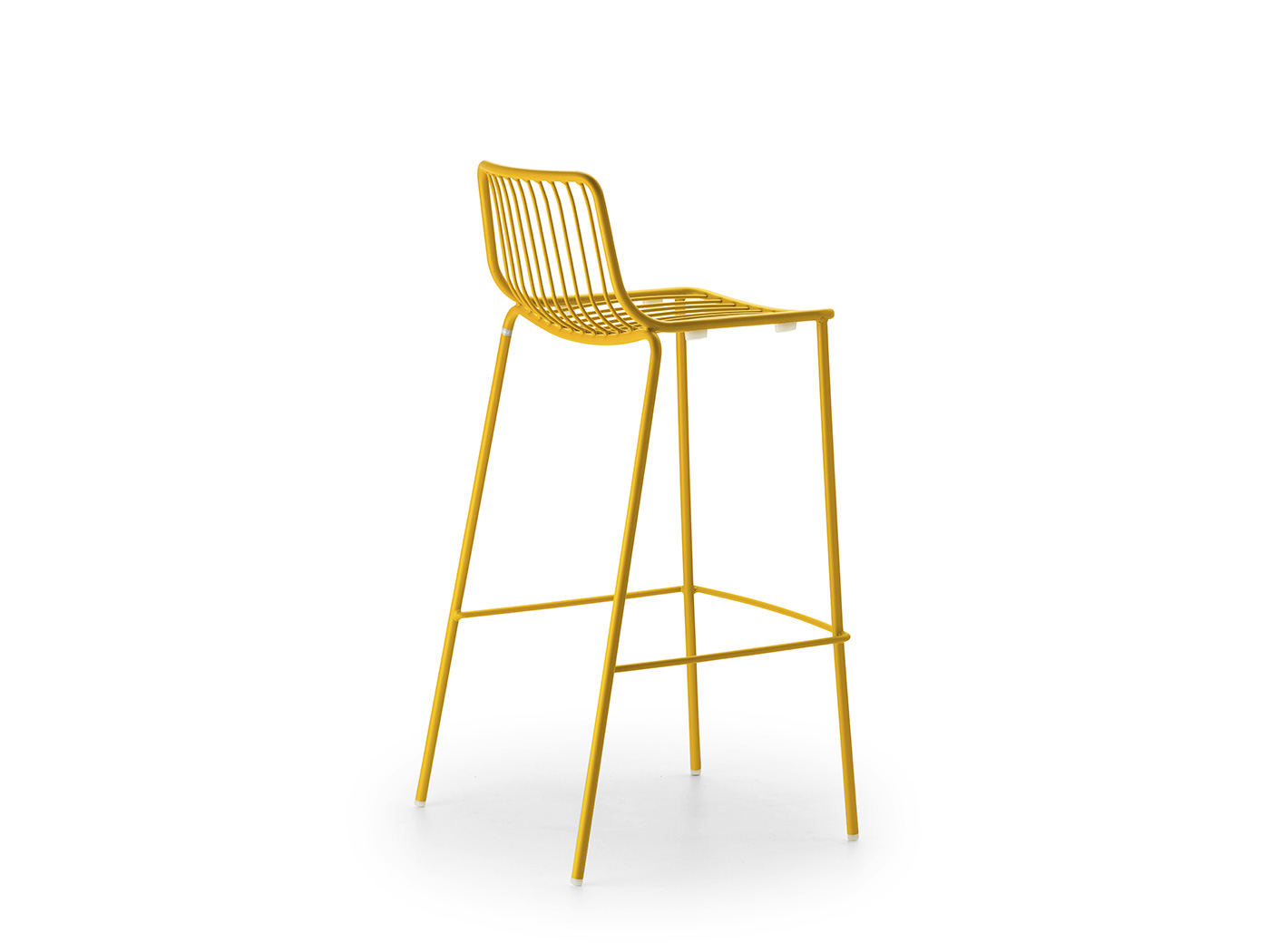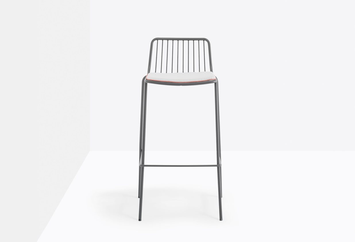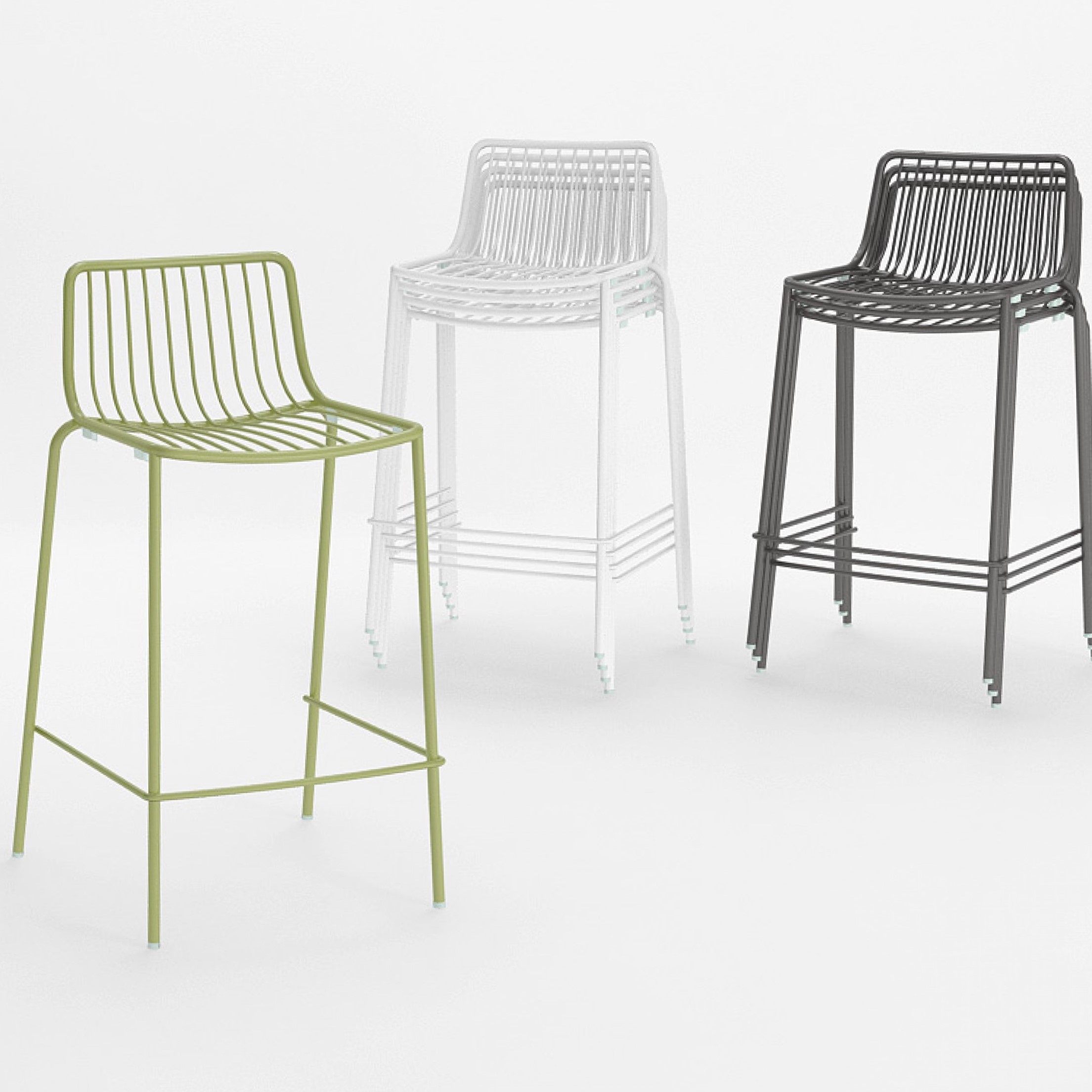 Nolita is a family of outdoor seatings that recalls the origins of a historic course started by Mario Pedrali in 1963 with his first metal garden chairs. Barstool with steel tube frame powder coated for outdoor use.