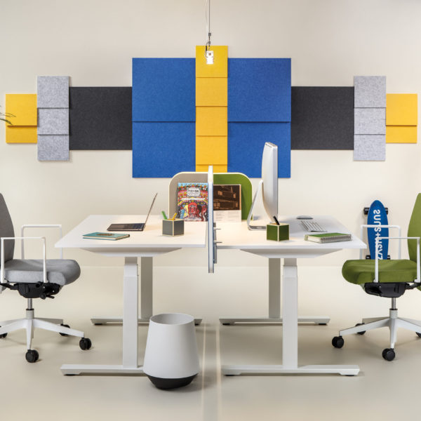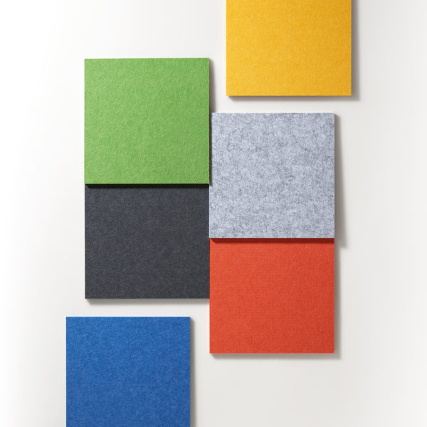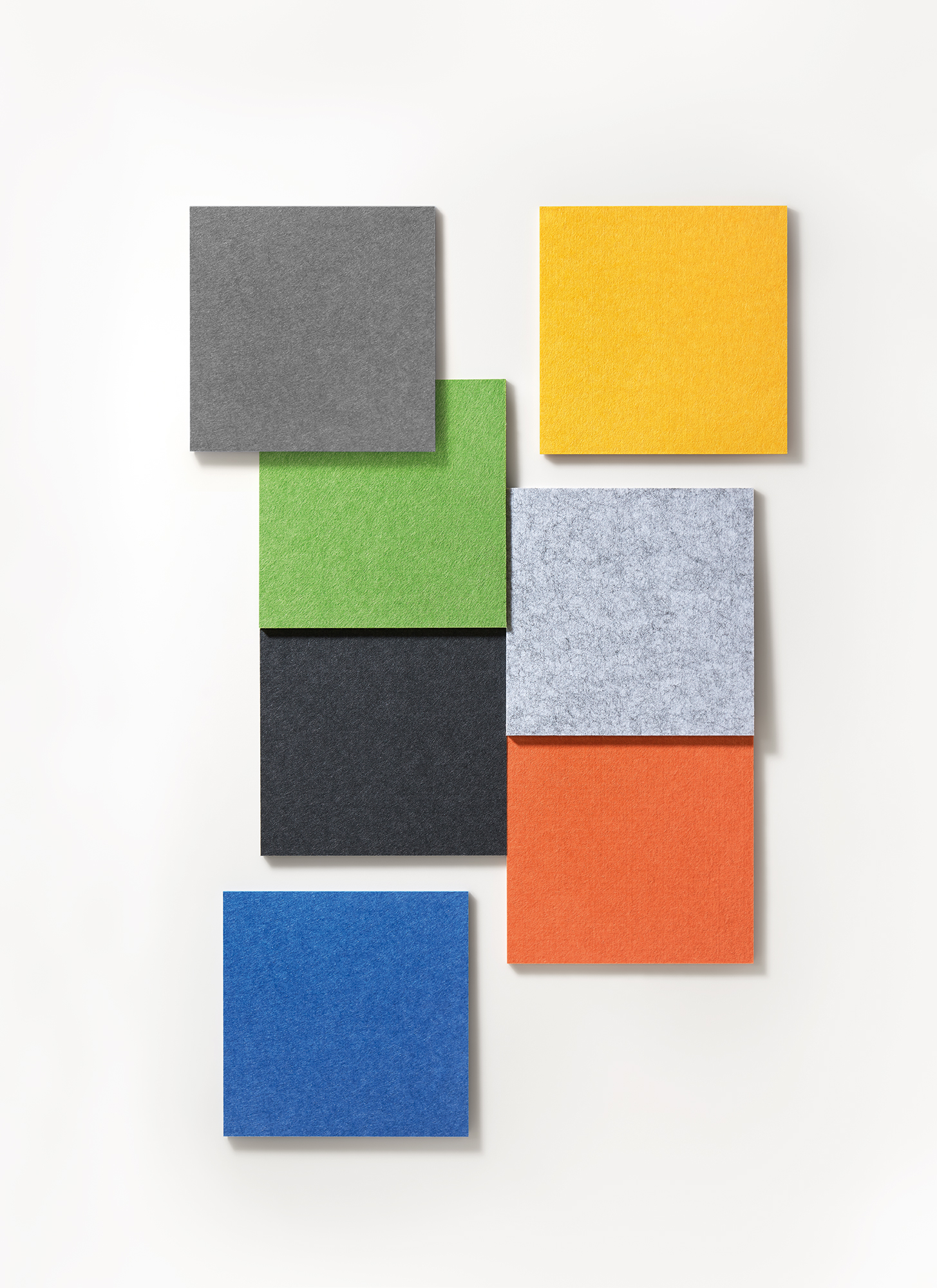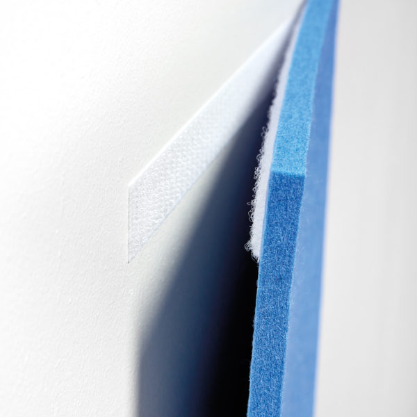 Imagine filling the wall with the legendary removable notes, but instead of for writing they absorb sound. This is what our sound-absorbing panels do in a very functional and modular way, attached to the wall using velcro. Just choose the colour, size and quantity, unleash your creativity. Made of 60% recycled polyester fiber.