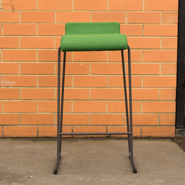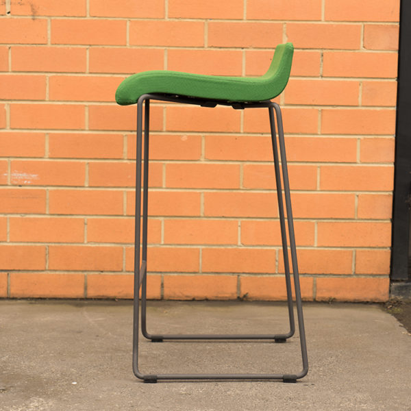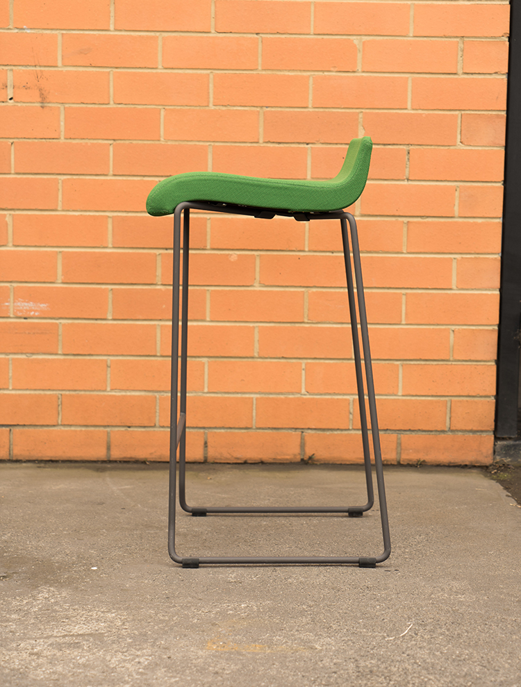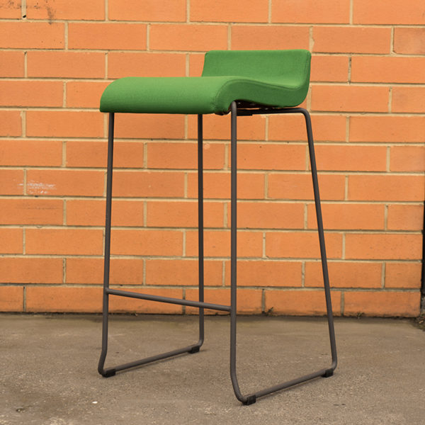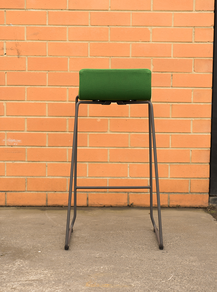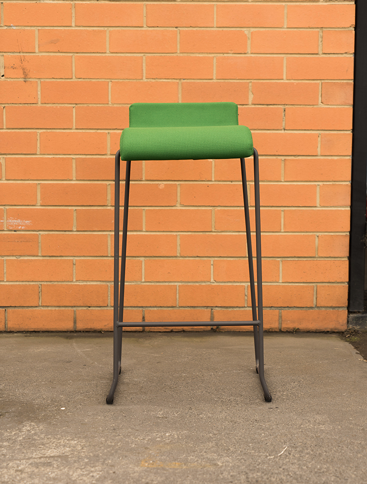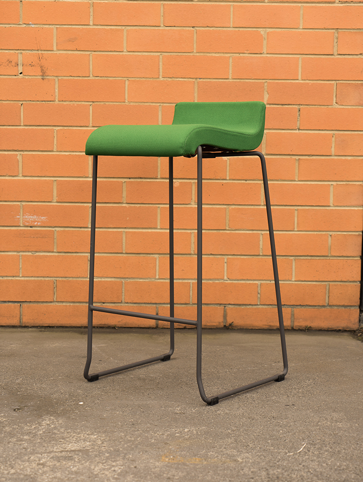 Black epoxy lacquered steel structure and green upholstered seat.