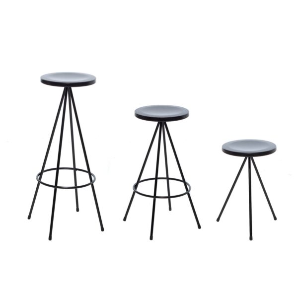 The three heights and different seat finishes (steel, wood and polyurethane) mean this stool collection can be used in a wide range of interior designs.