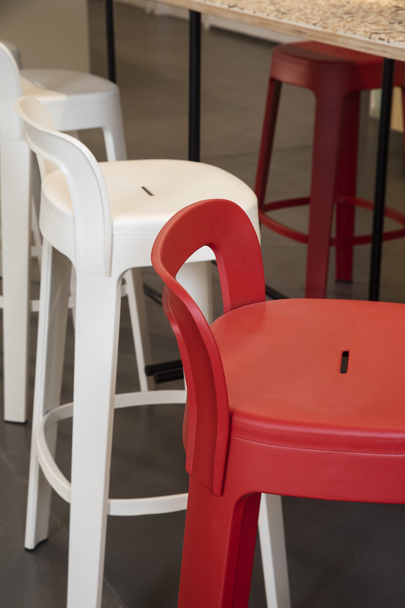 The Ombra stool has its own place in a bar, restaurant, terrace, office or home. Its generous measurements and the ergonomic shape of its seat provide a comfortable sitting. Steel structure with cataphoric coating process with micro textured polyester paint. Available in bar, counter or low version. Custom colours available upon request.