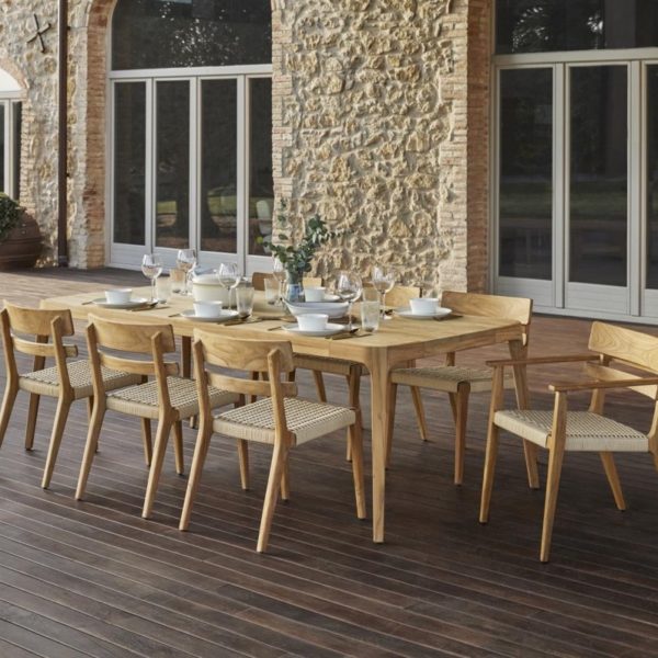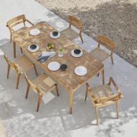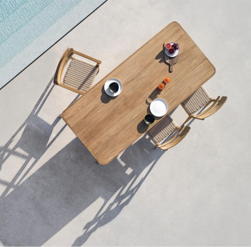 Frame and top in grade A teak from sustainable logging forests in Indonesia. Adjustable legs.