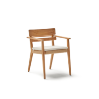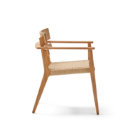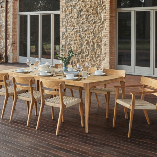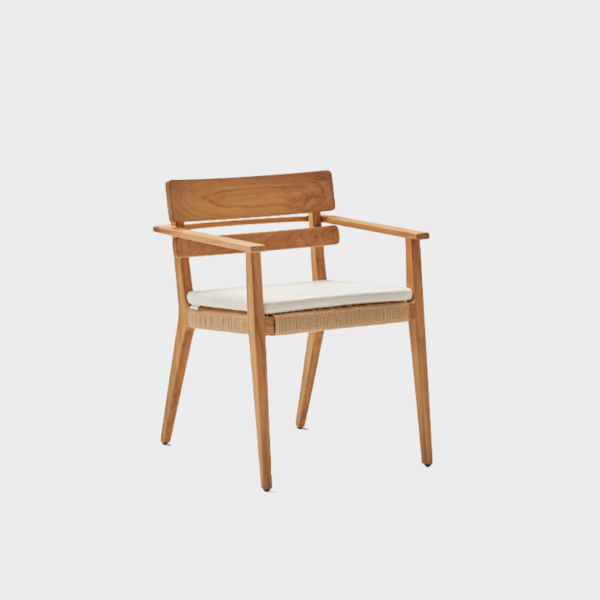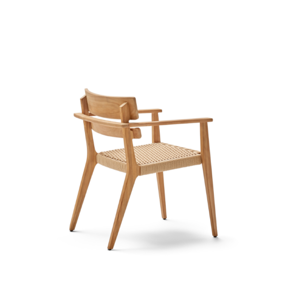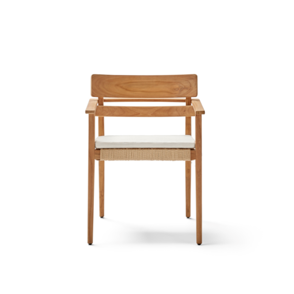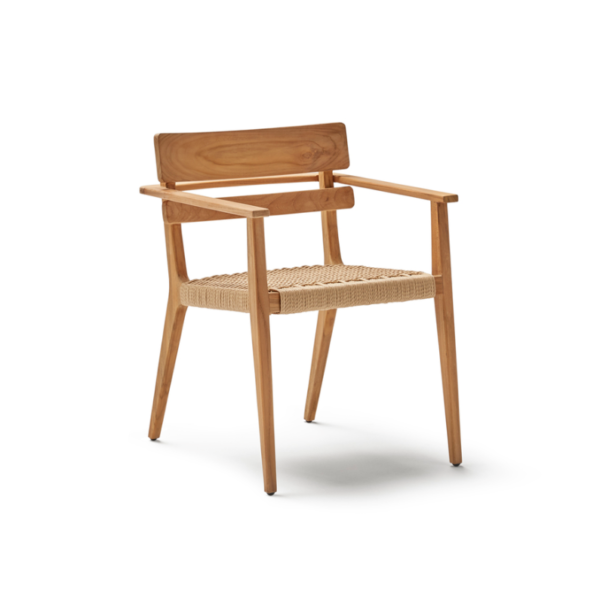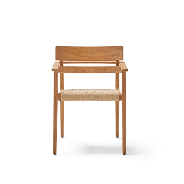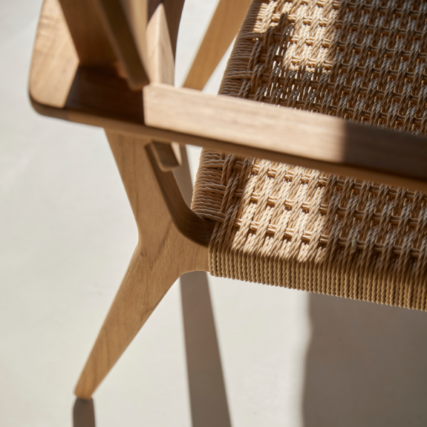Frame in grade A teak from sustainable logging forests in Indonesia. Seat braided in synthetic rope. Optional seat cushion in high-strength 35 kg polyurethane foam with cover in Point sample fabric.