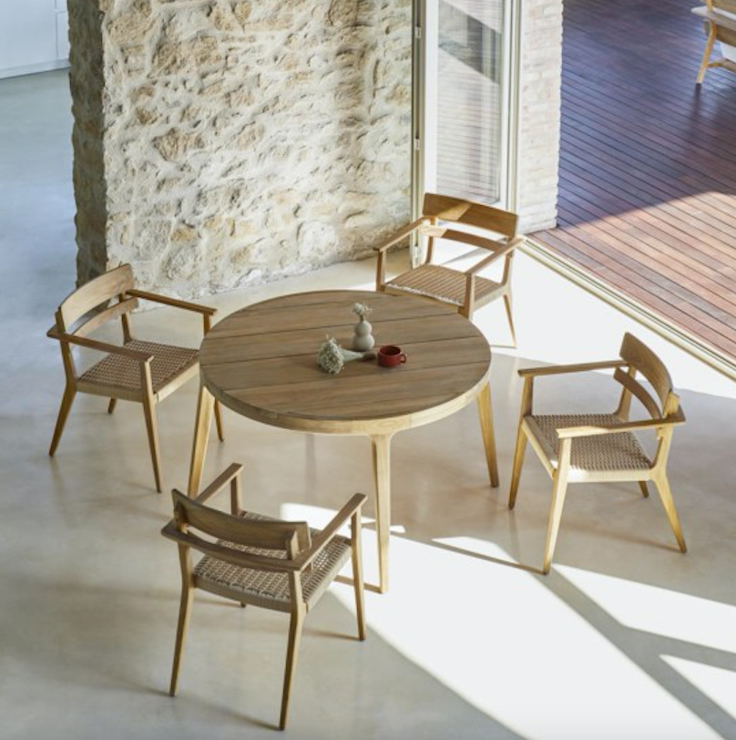 Frame and top in grade A teak from sustainable logging forests in Indonesia. Adjustable legs.