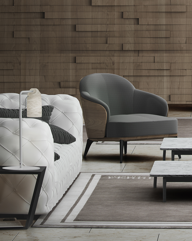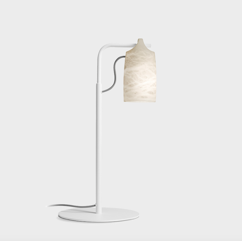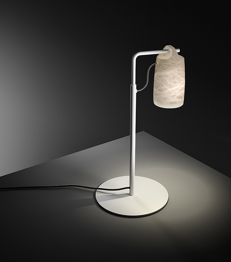 Alabaster gives each shade its own identity, with white and grey veins, sometimes with some shade of a fascinating earthy colour and a soft and warm translucence. It has a fine and polished touch and no two are the same, since each of them is made with a different fragment of the alabaster block. What attracts us most of this collection is that it plays with the contrast between simple structures on one side and the heaviness of the stone on the other: the perfect balance between both is the axis of the collection.