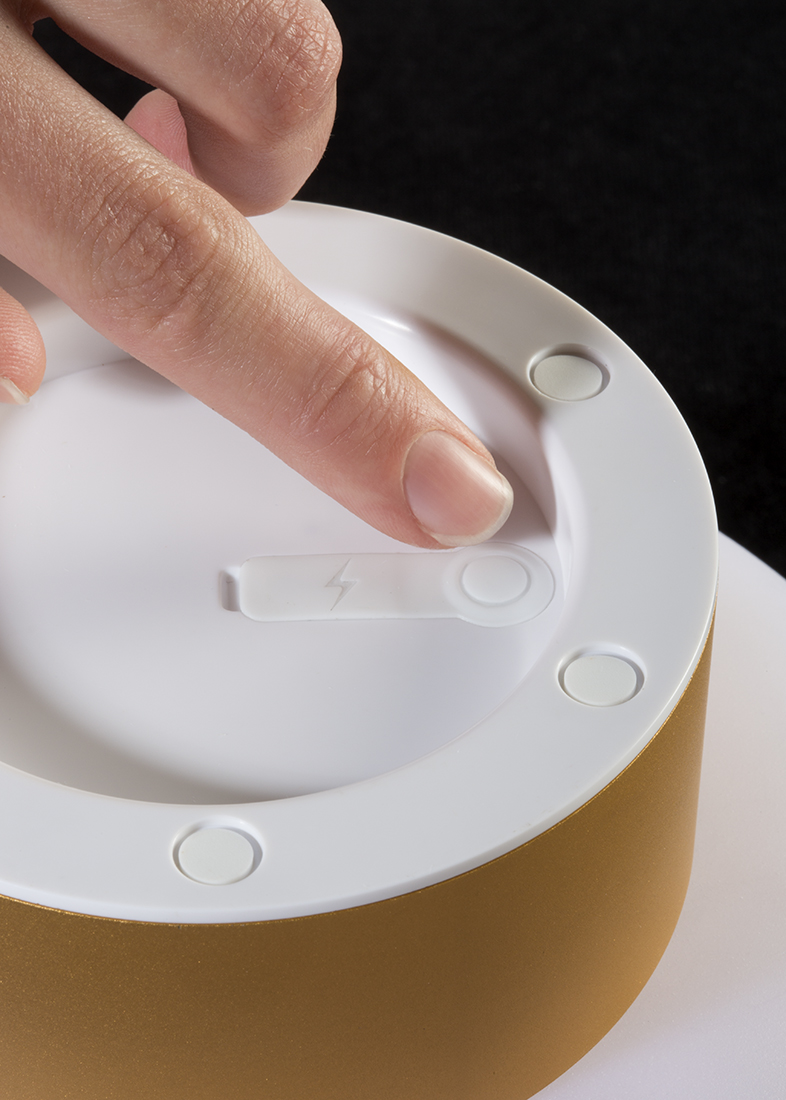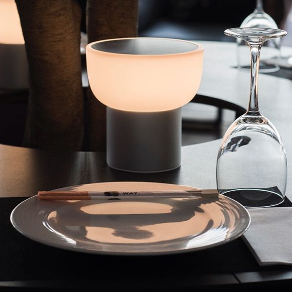Patio is a lamp with a fun design, without cables, designed to illuminate a table, either indoor or outdoor, without the need for a plug. It has three intensities of light, one for each moment.