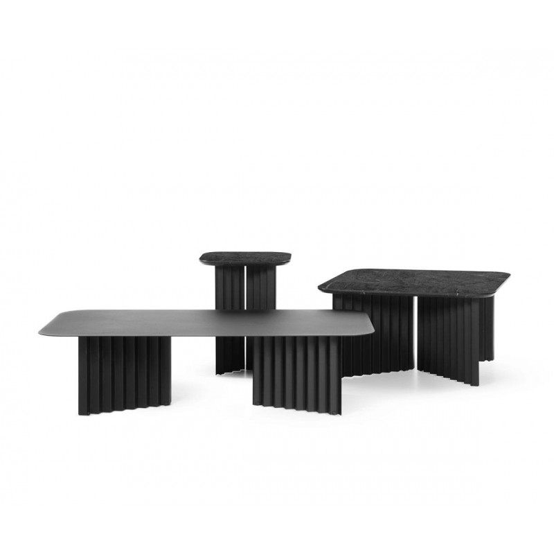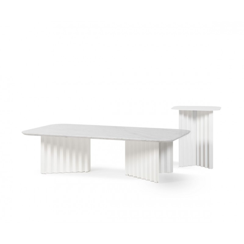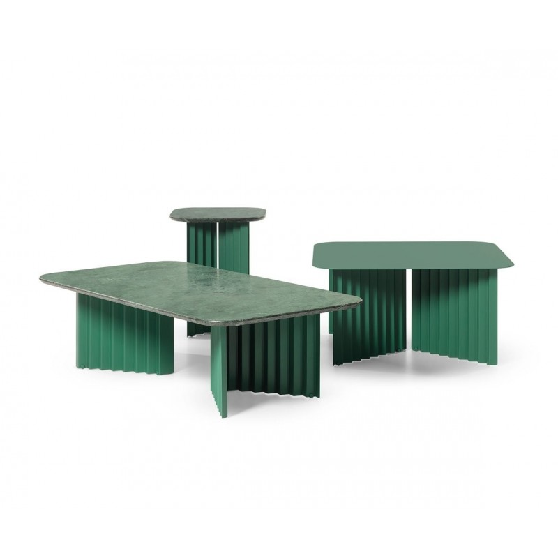 Plec is a collection of coffee and side tables that are as happy together as they are alone. With their accordion-shaped legs, all three Plec tables (large, medium and small) love creating light and shade effects at any time of day. The Plec table has a steel structure coated with polyester paint. The table top comes in steel or marble, with a range of colours available for both options. So you can combine sizes, colours and finishes any way you like.