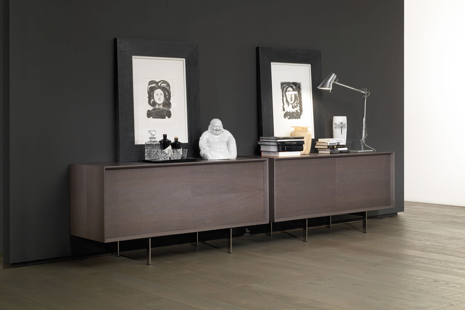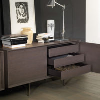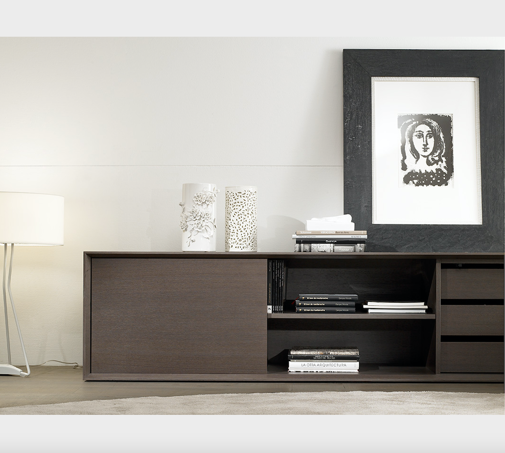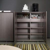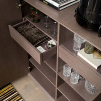 In simplicity and formal purity lies the premise of its design. The uniqueness of this collection is based on the bevel that outlines all the furniture, which gives it the point of distinction and elegance. Prisma is distinguished by the skill of hand worked craftsmanship and besides the quality of finishes for all interiors, are made in original veneer. The collection can be conducted using oak veneer or lacquered all colours according to the line catalogue.