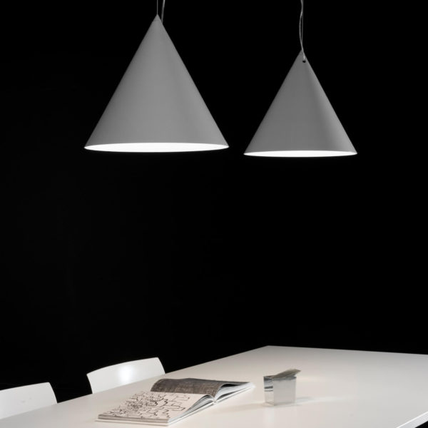 Spun aluminum shade; exterior polished and painted with Axalta paint. New colour range. Inside always white finish. Electrical cotton lined with the same colors. Direct Light.