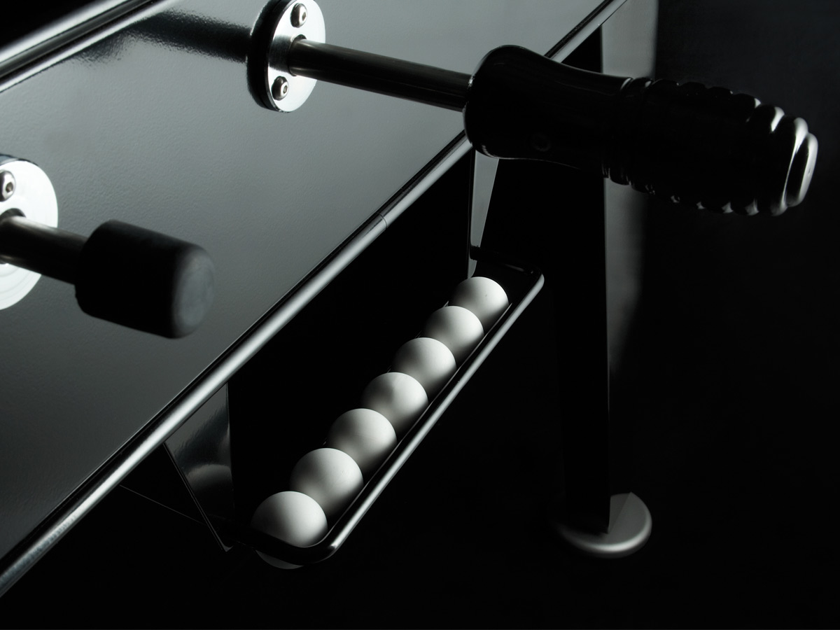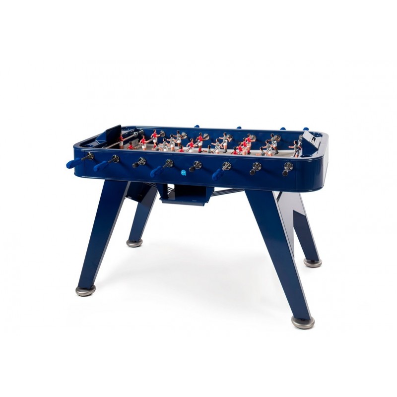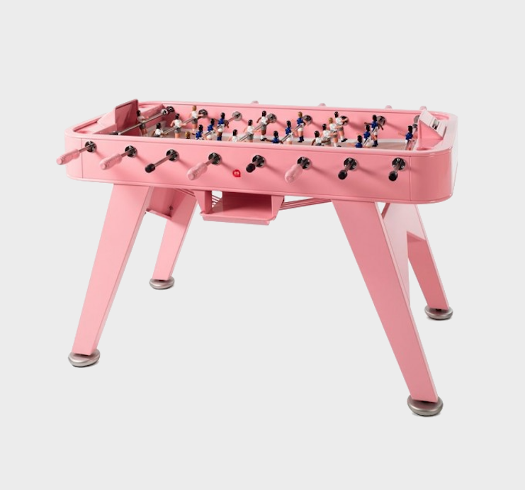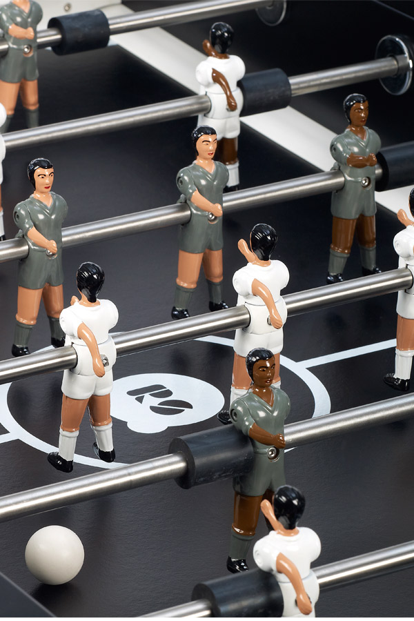 Yes, RS#2 is a football table. A spectacular reinterpretation of one of our cultural classics. It’s made in high-quality materials, such as steel with a polyester paint finish. Or like weather-resistant stainless steel (model RS#2 Inox). And it’s the details that make the difference, such as the rubber-soled levelers, or the glass-holders for the four players. Each table colour comes with standard teams, but the layout of the players and the choice of team colours is 100% customisable. Please specify finish and colour.