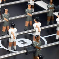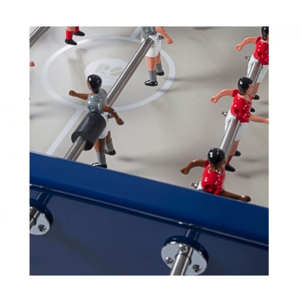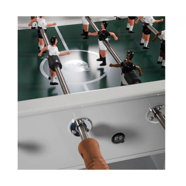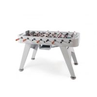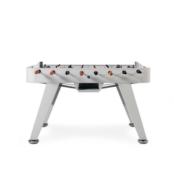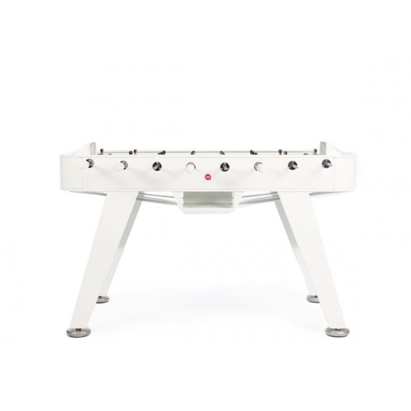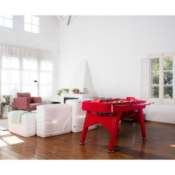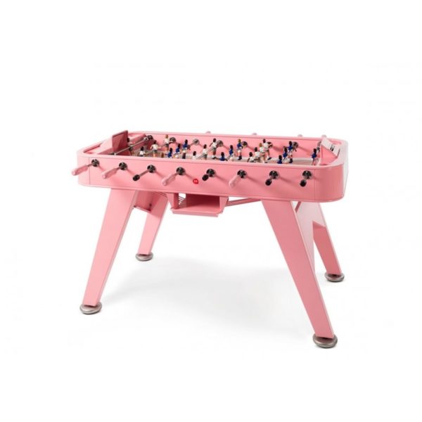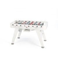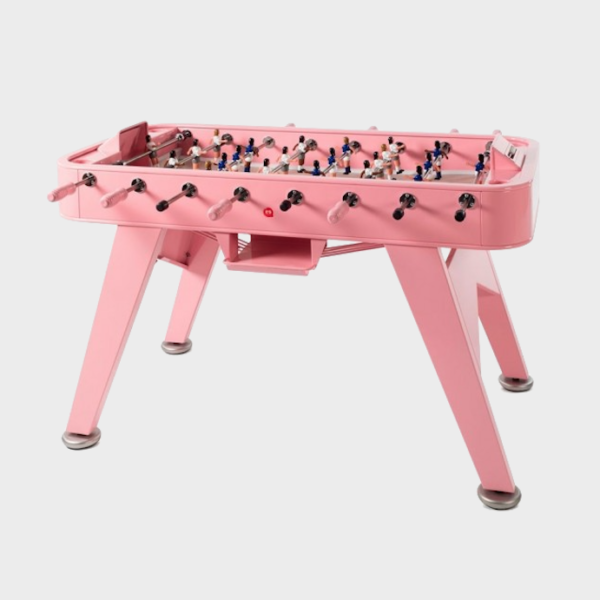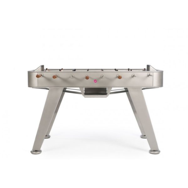 Yes, RS#2 is a football table. A spectacular reinterpretation of one of our cultural classics. It’s made in high-quality materials, such as steel with a polyester paint finish. Or like weather-resistant stainless steel (model RS#2 Inox). And it’s the details that make the difference, such as the rubber-soled levelers, or the glass-holders for the four players. Each table colour comes with standard teams, but the layout of the players and the choice of team colours is 100% customisable. Please specify finish and colour.