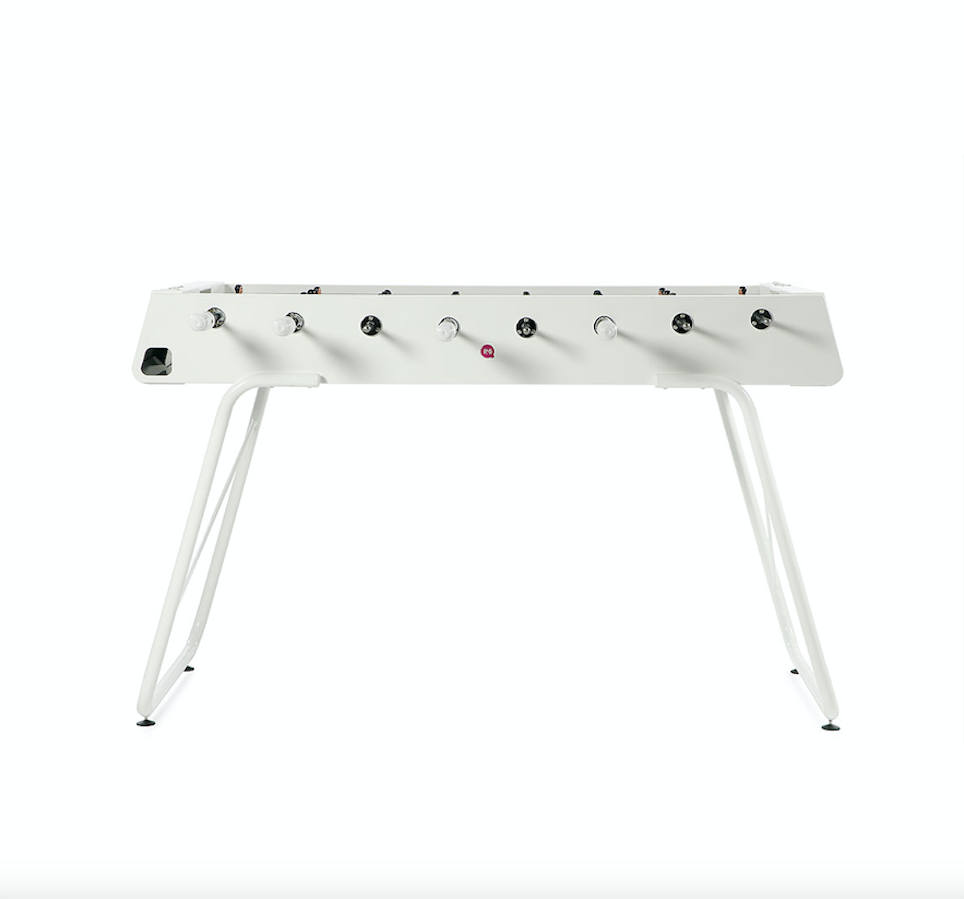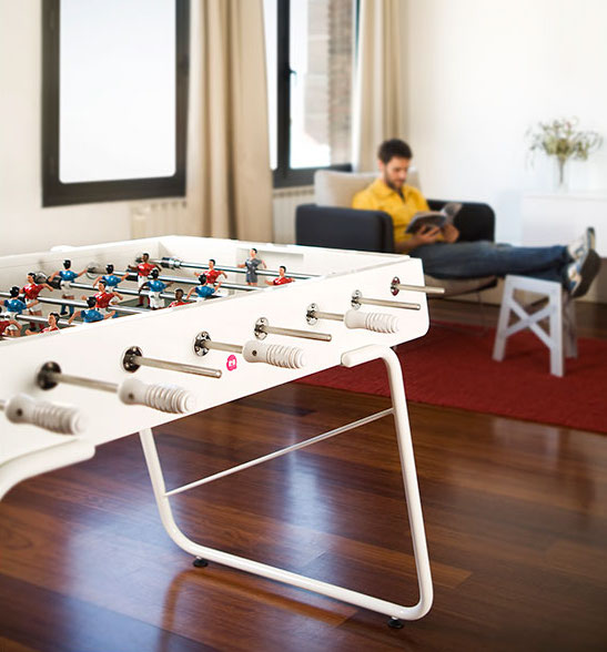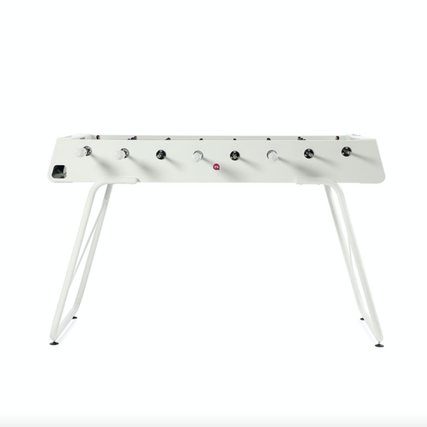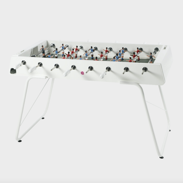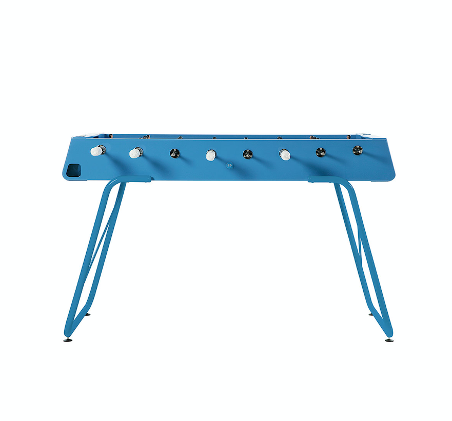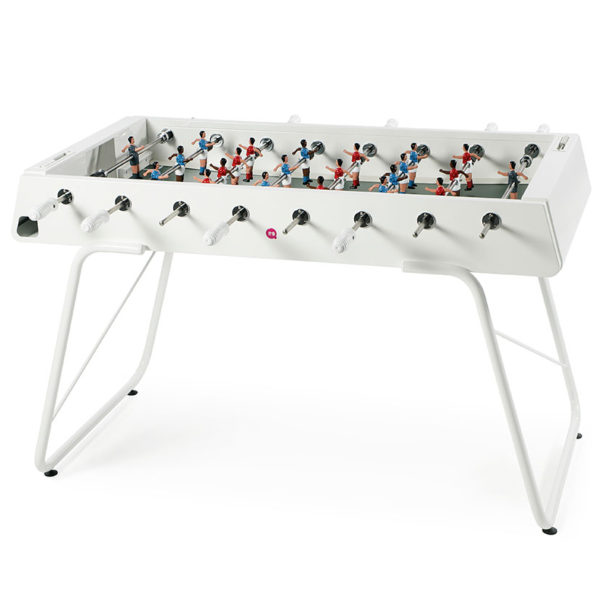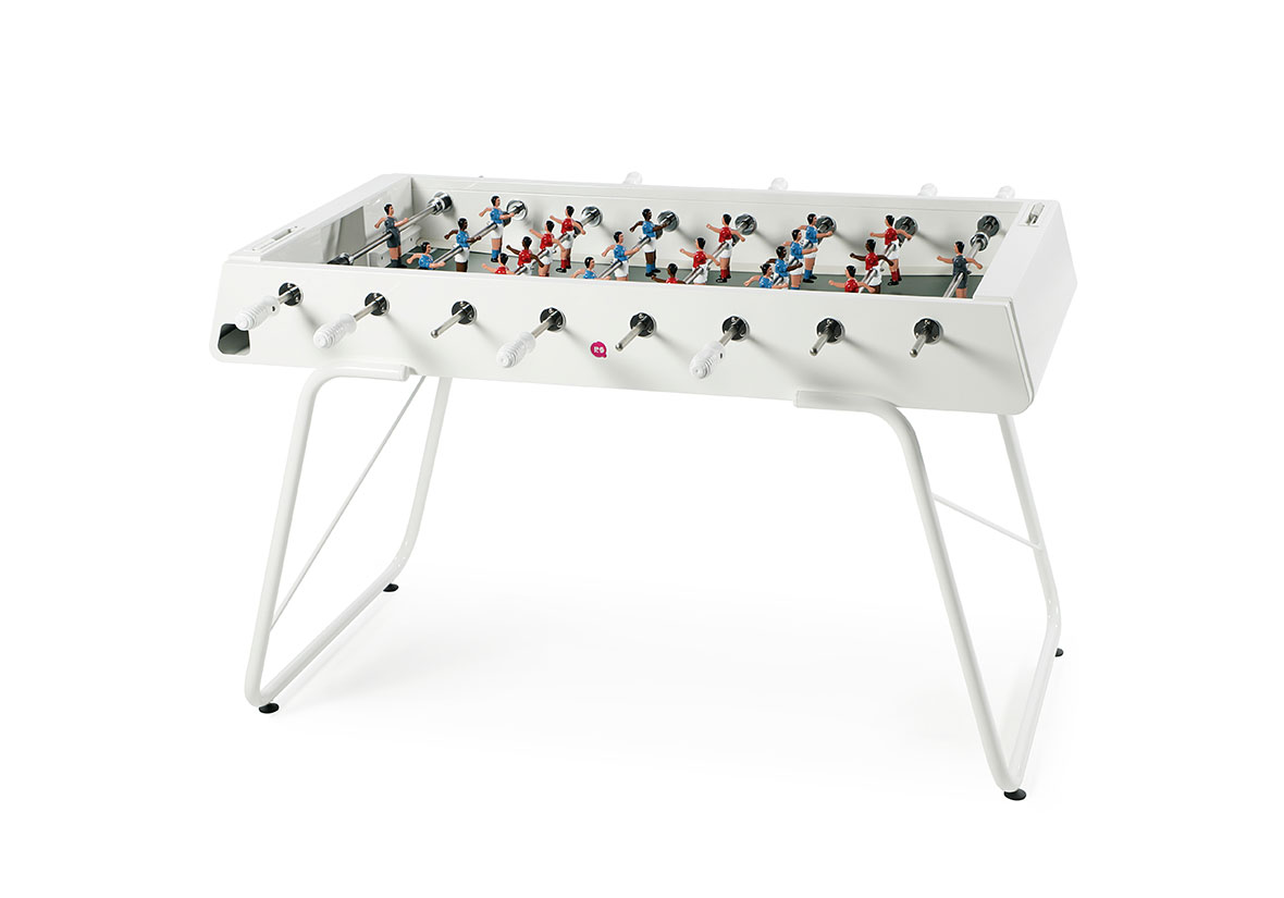 Finally, a football table for everyone. It’s all-terrain: the same model for indoor and outdoor. Its new lines and legs make it lighter (20 kilos less than RS#2). But without losing strength and stability. RS#3 comes in white, red, blue and yellow to add a touch of colour to every match. Each colour comes with standard teams. It’s made in high-quality materials, such as the weather resistant steel with cataphoresis coating process.