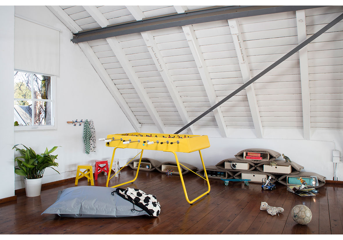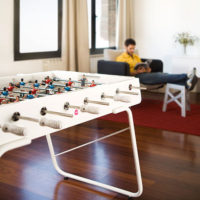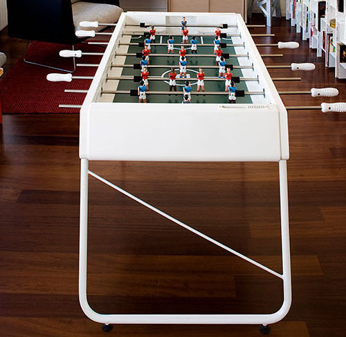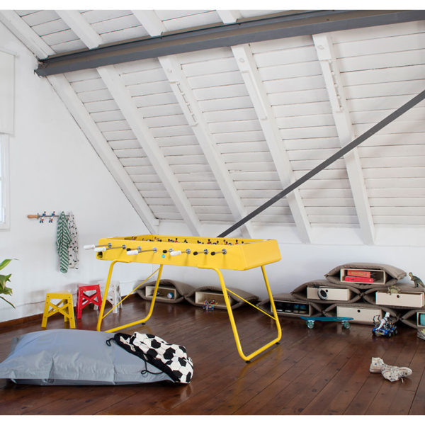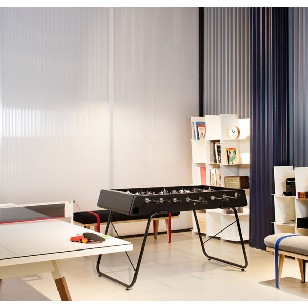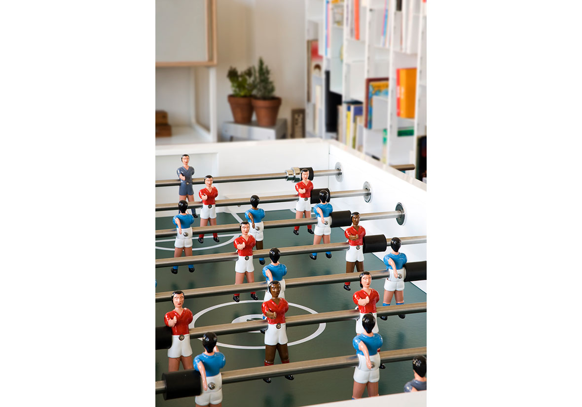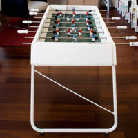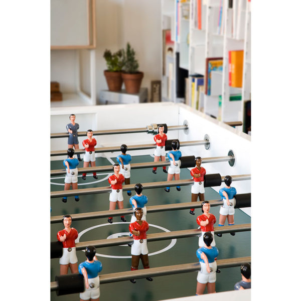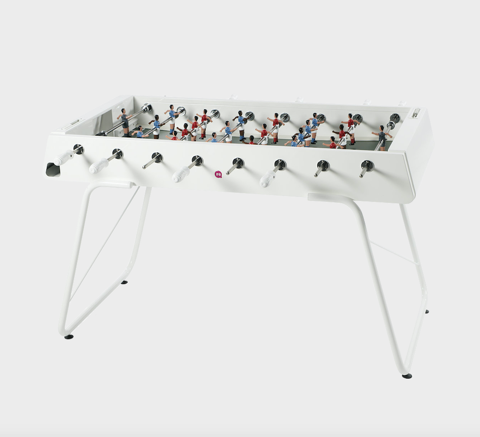Finally, a football table for everyone. It’s all-terrain: the same model for indoor and outdoor. Its new lines and legs make it lighter (20 kilos less than RS#2). But without losing strength and stability. RS#3 comes in white, red, blue and yellow to add a touch of colour to every match. Each colour comes with standard teams. It’s made in high-quality materials, such as the weather resistant steel with cataphoresis coating process.