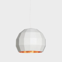 The warmth of the fixture’s ceramics contrasts with the faceted edges of the sphere, making it seem as if it is winking playfully. Made using a meticulous, traditional design process, the lamps are fired four times —using glazes specifically developed for this collection— and incorporate warm, high-quality materials, such as gold.