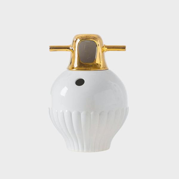 To celebrate the 10th anniversary of the Showtime Collection, we asked Jaime for new vase finishes. His proposal was 24 carat gold, which has been a great success. Made up of two pieces in glazed stoneware, with a white finish and 24 carat gold plated decorations.