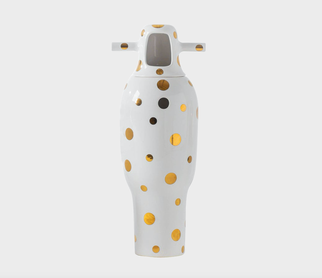 To celebrate the 10th anniversary of the Showtime Collection, we asked Jaime for new vase finishes. His proposal was 24 carat gold, which has been a great success. Made up of two pieces in glazed stoneware, with a white finish and 24 carat gold plated decorations.