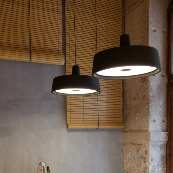 Soho is presented as a statement, in recognition of the merits of the lamps traditionally used in markets, taverns and cafeterias. After studying different volumes, proportions and materials, new uses and lighting effects have emerged.