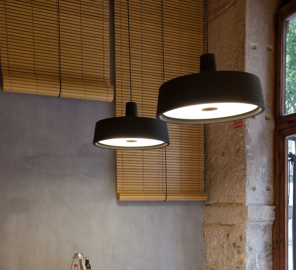 Soho is presented as a statement, in recognition of the merits of the lamps traditionally used in markets, taverns and cafeterias. After studying different volumes, proportions and materials, new uses and lighting effects have emerged.
