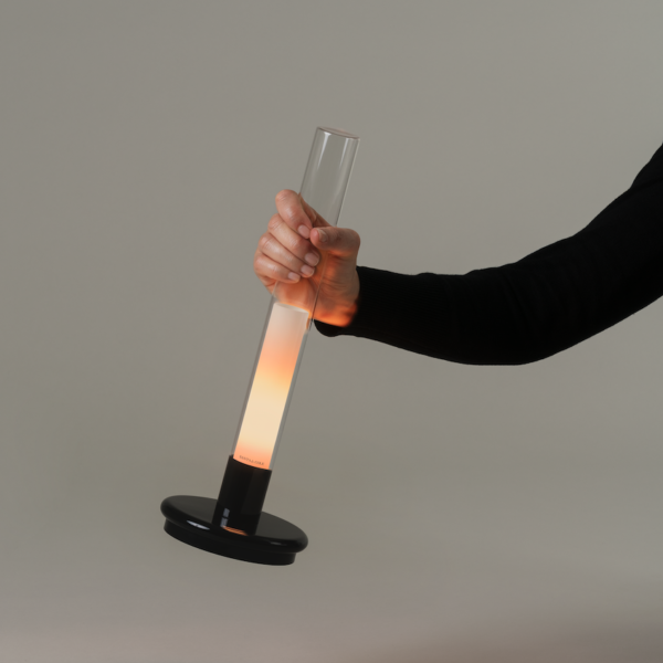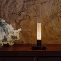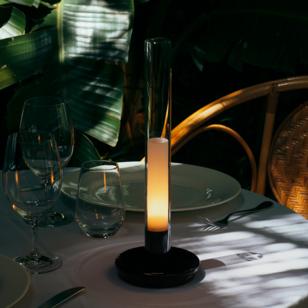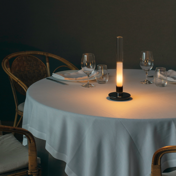 The Sylvestrina lamp follows you around. Freed from the moorings of electric wires, now it lights up any conversation, including in its usual place, resting on a table.