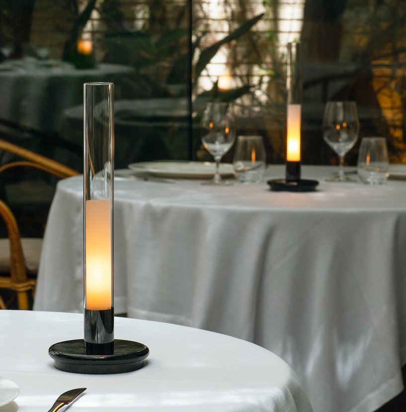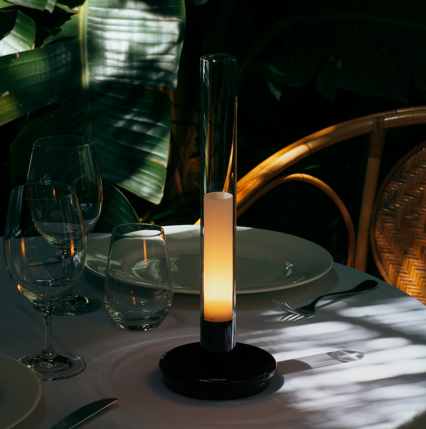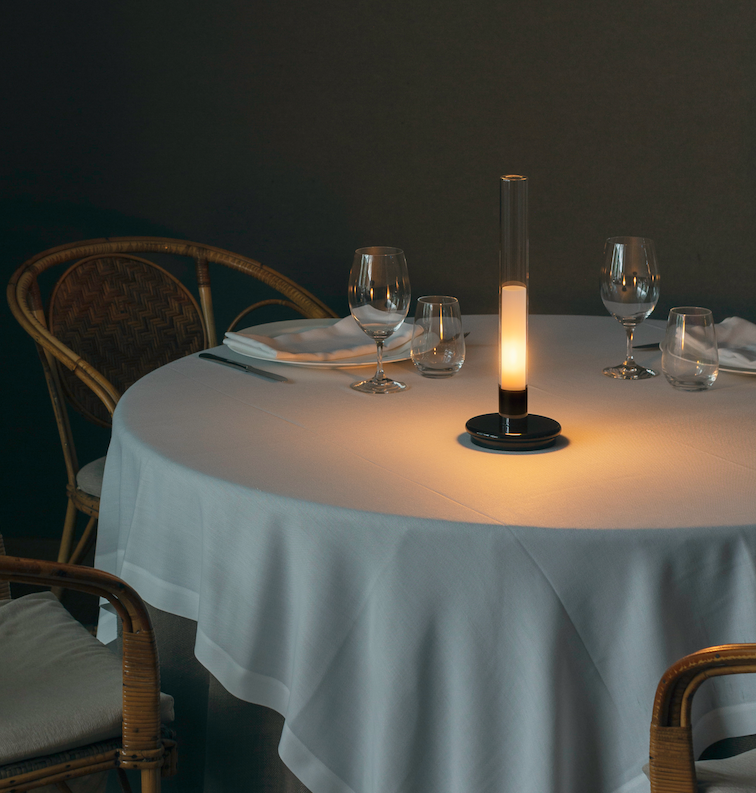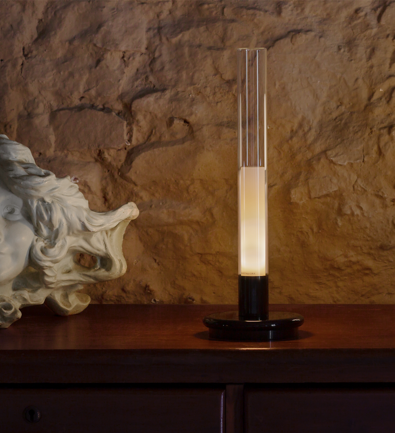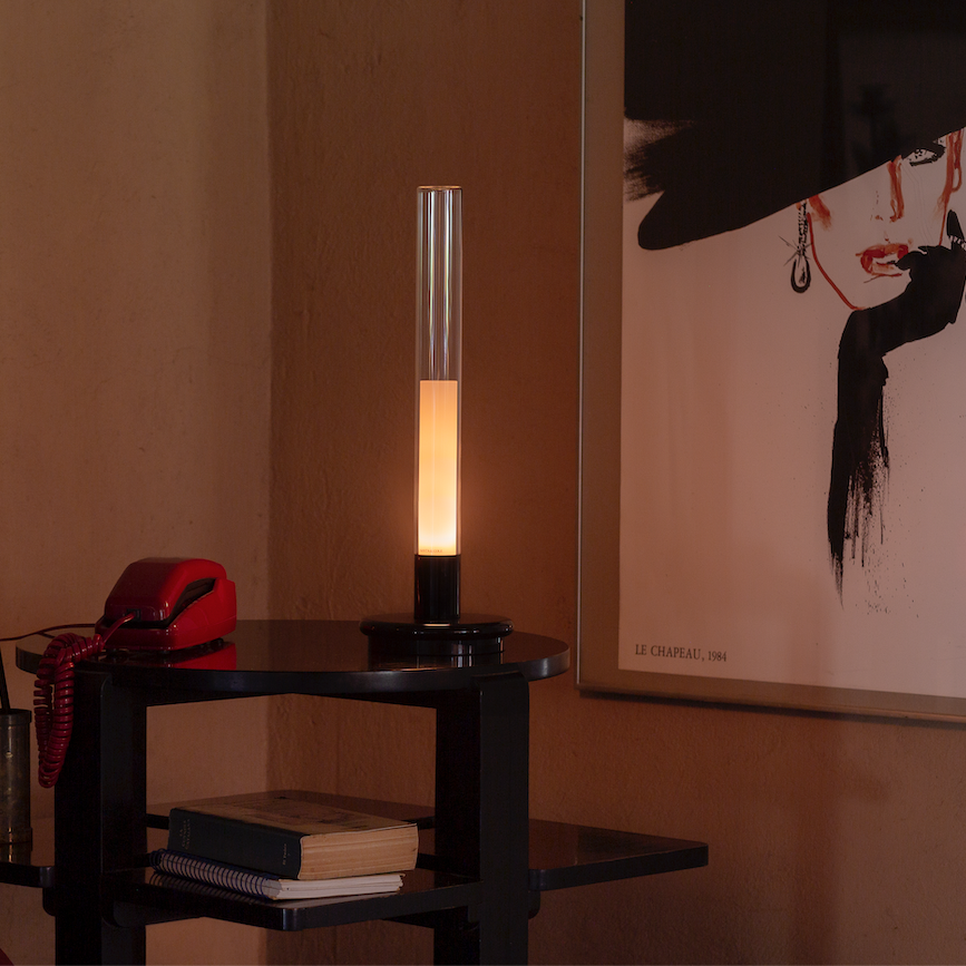 The Sylvestrina lamp follows you around. Freed from the moorings of electric wires, now it lights up any conversation, including in its usual place, resting on a table.