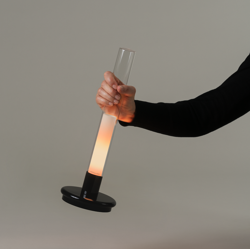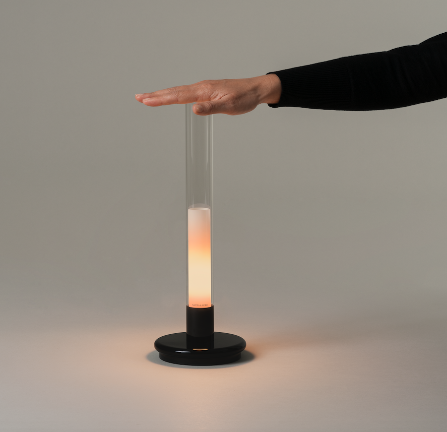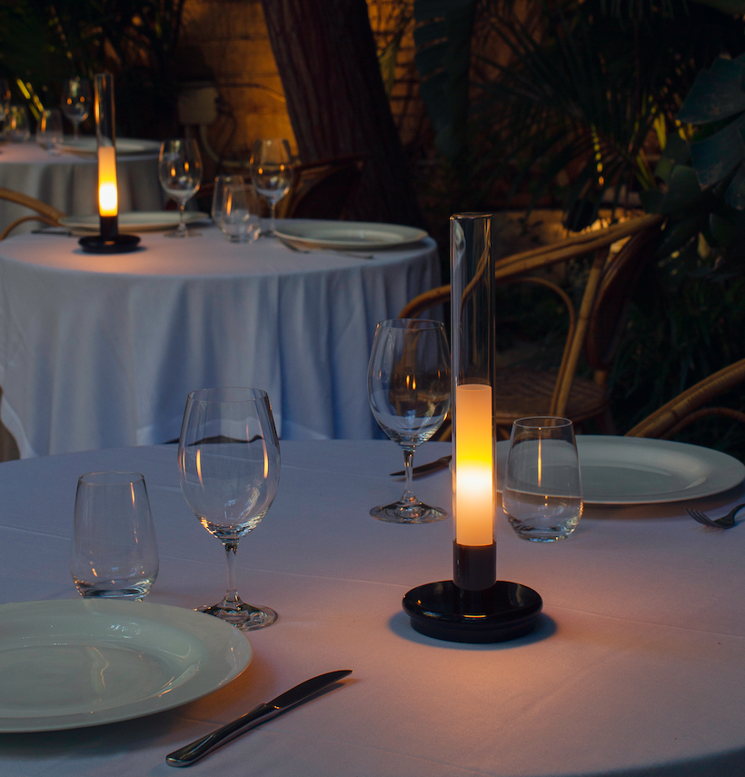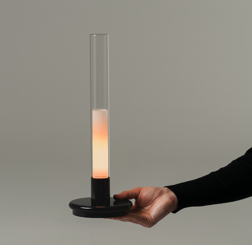 The Sylvestrina lamp follows you around. Freed from the moorings of electric wires, now it lights up any conversation, including in its usual place, resting on a table.